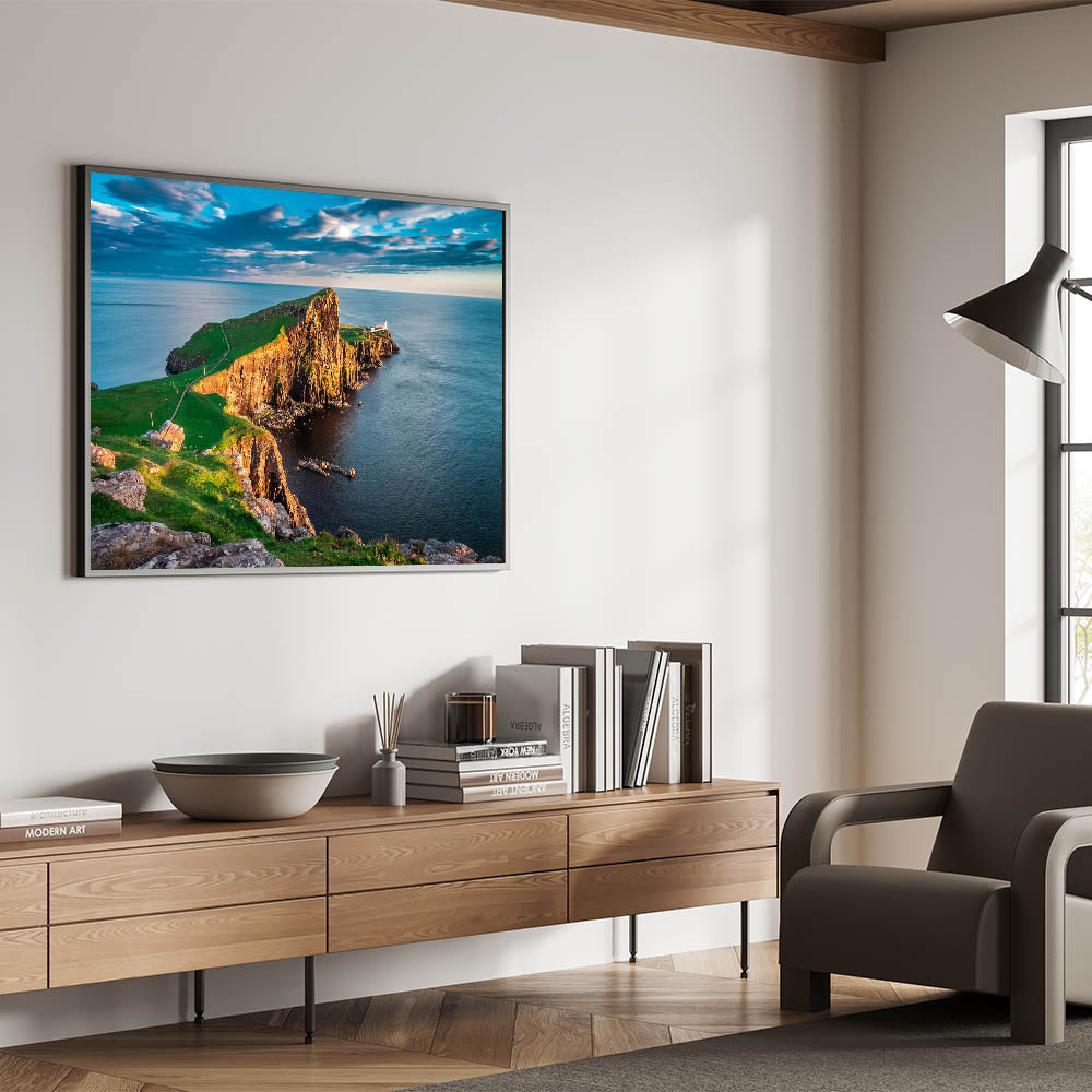 Whether you’re decorating a modern space or a coastal retreat, this Neist Point Lighthouse artwork offers a stunning focal point. Let the Captivating Scotland Scenery of this scenic location bring a sense of tranquility and awe to your space.