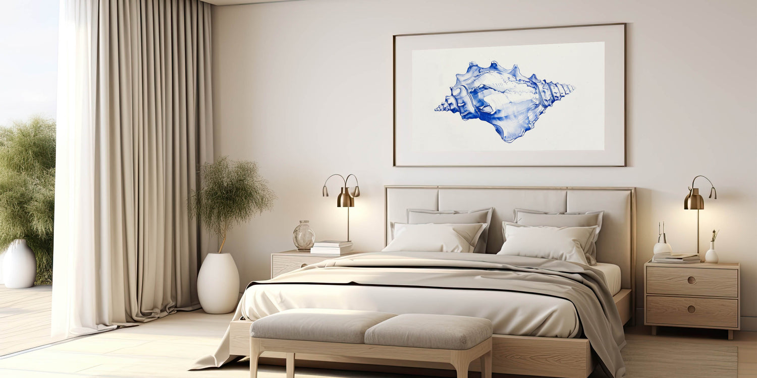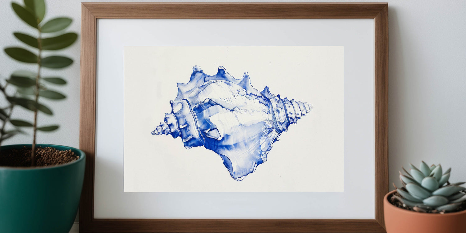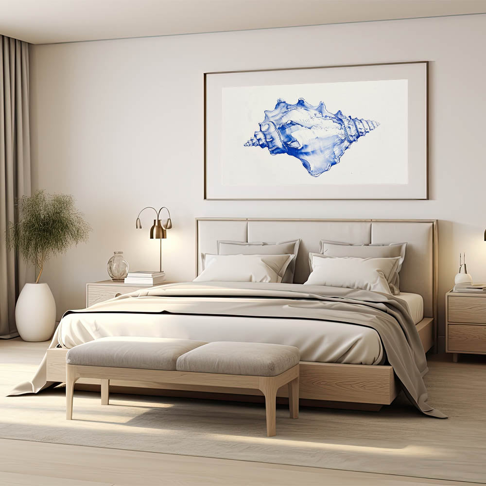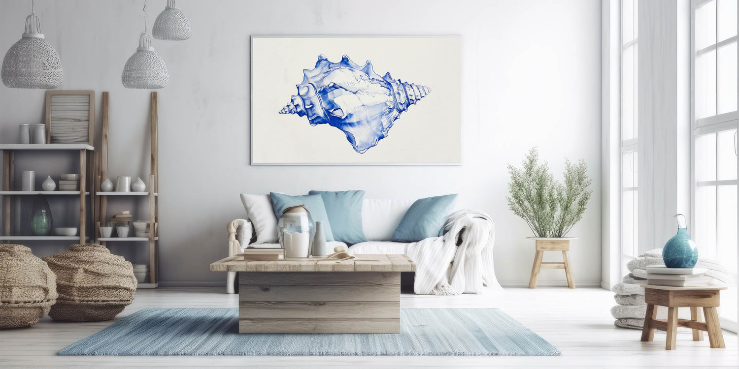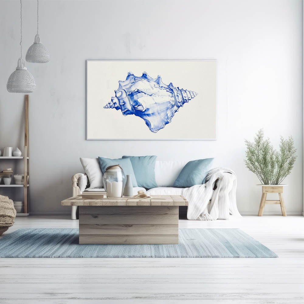 Bring the beauty of the ocean into your home with this stunning seashell coastal wall art. Featuring an intricately detailed conch shell rendered in soft shades of blue, this artwork captures the elegance and natural charm of seaside treasures. Its minimalist design is perfect for coastal-inspired or nautical decor, adding a touch of oceanic serenity to any space. Whether you're decorating a beach house or creating a coastal retreat at home, this seashell print evokes the soothing ambiance of the sea.