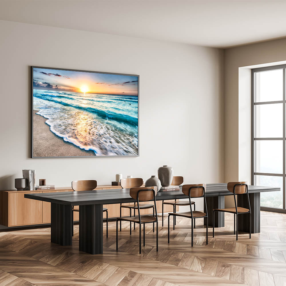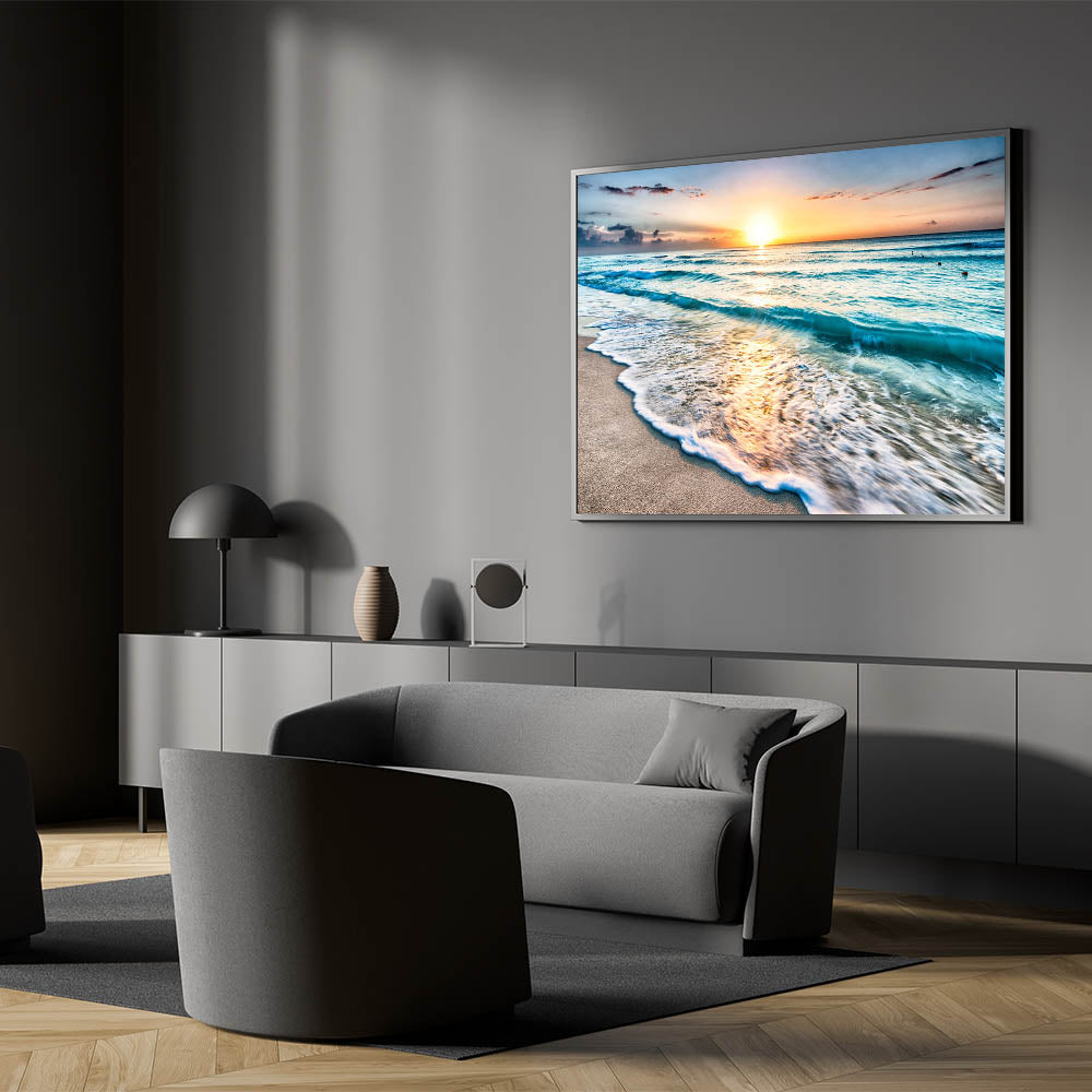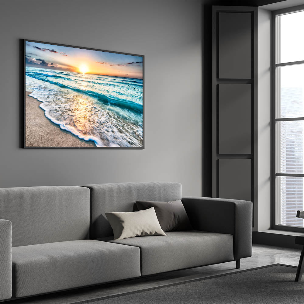 - Vivid, high-definition colors that capture the warmth and serenity of a beach sunrise.
