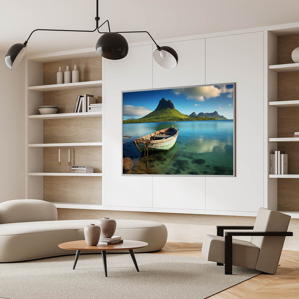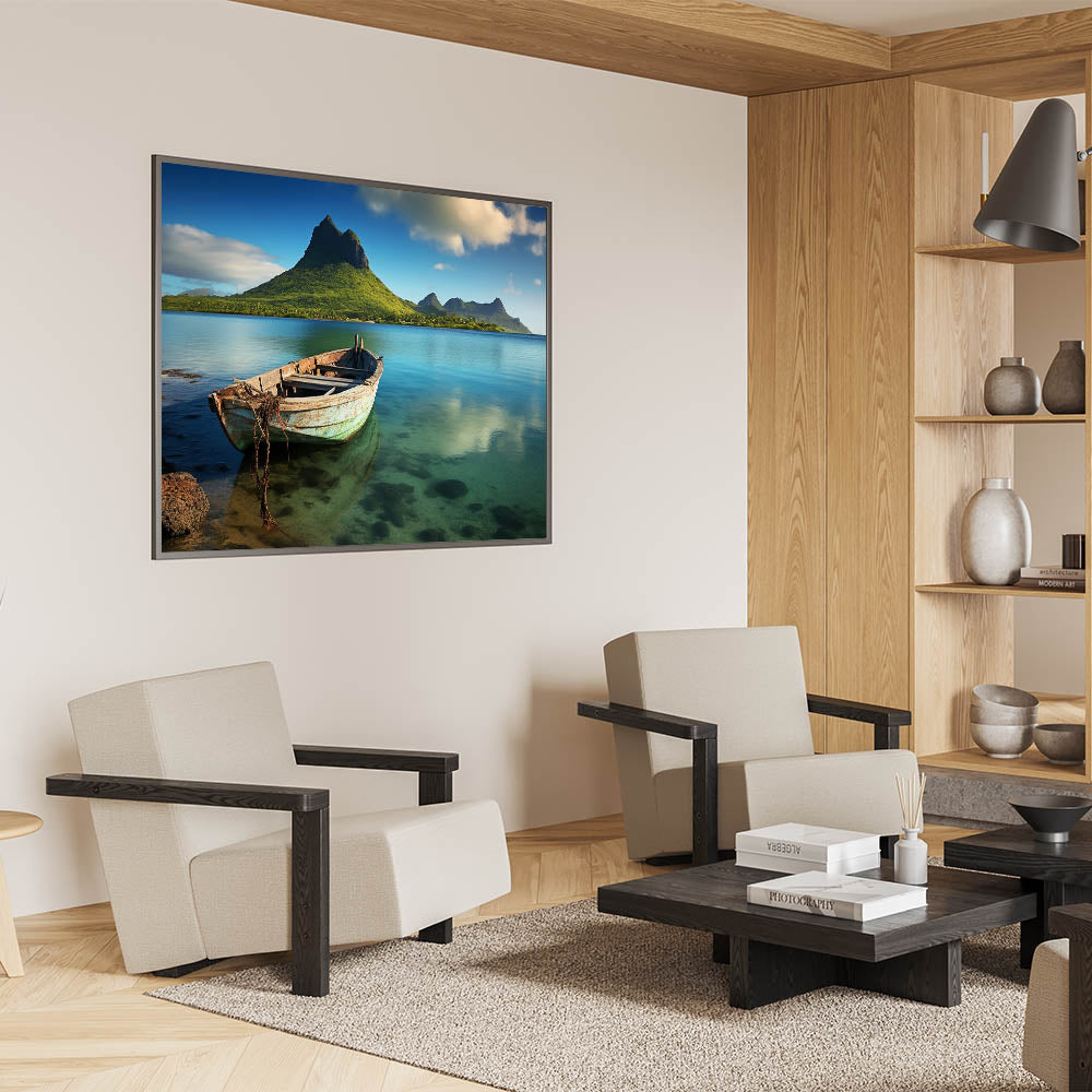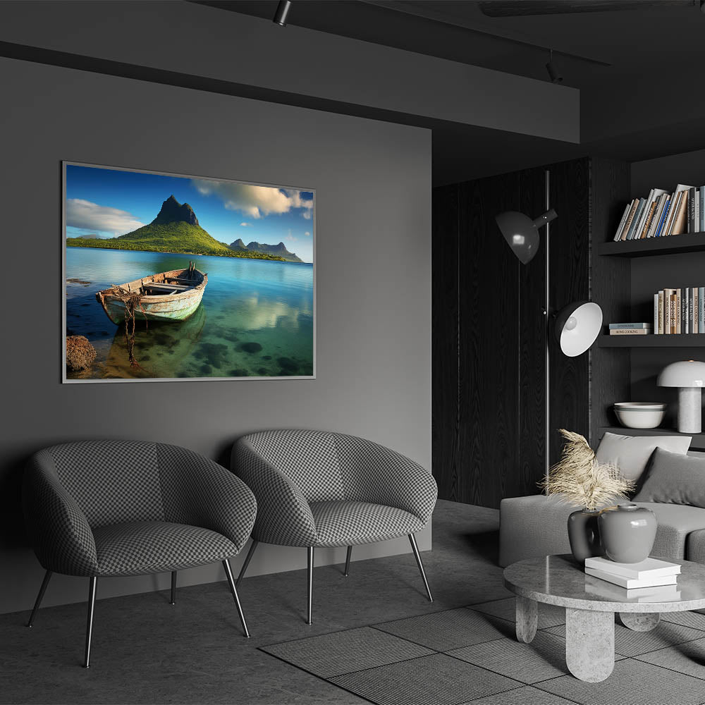 Embrace the tranquility of twilight on the Mauritian coast with this stunning wall art, featuring a serene boat gently resting on the calm waters of Le Morne. The majestic Le Morne Brabant mountain provides a breathtaking backdrop, bathed in the soft, fading light of the day. This piece, part of our Mauritius Art Collection, captures the peaceful beauty of one of the island's most iconic and serene locations.