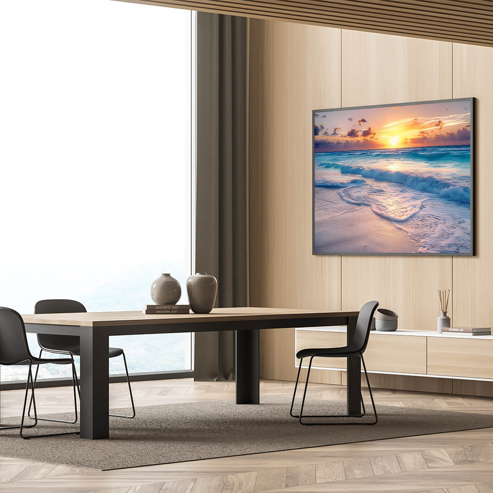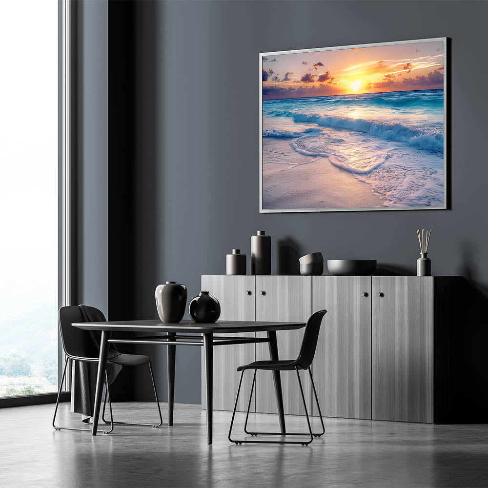 This Cancun beach photography print is the perfect way to bring the tranquility of the ocean into your space. The peaceful sunset and gentle waves create a soothing aesthetic, making it ideal for creating a calm and inviting environment.