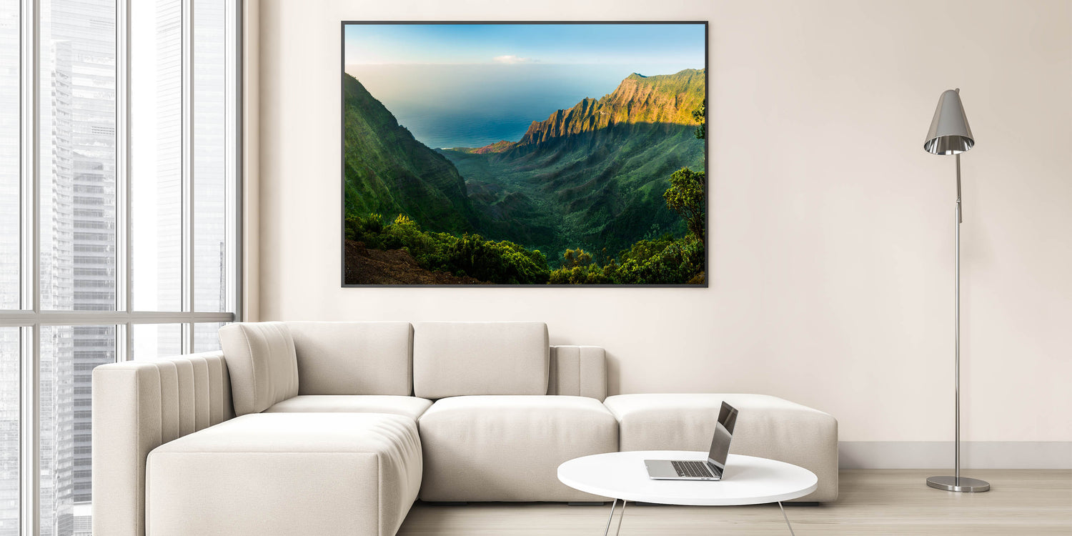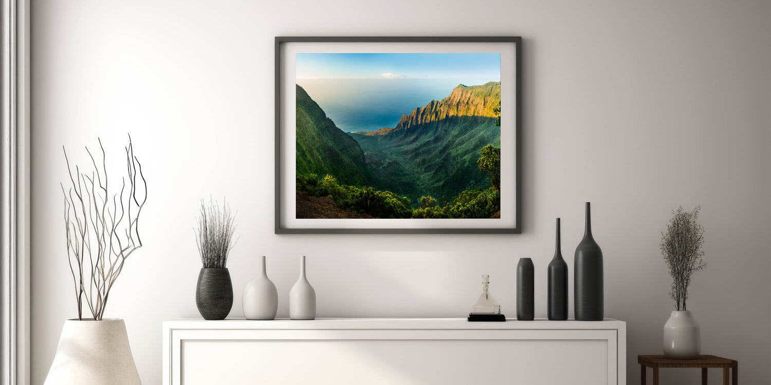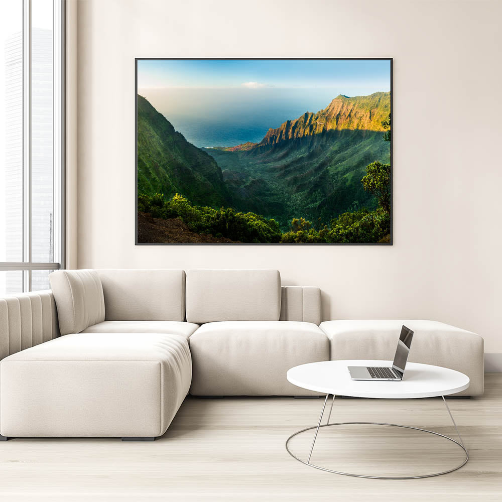 • Stunning Details: The rich greens of the valley contrast with the deep blues of the ocean, creating a dynamic and visually striking piece that brings nature’s beauty indoors.