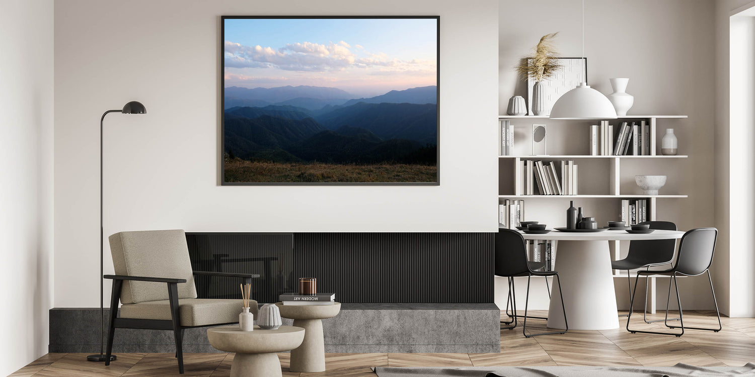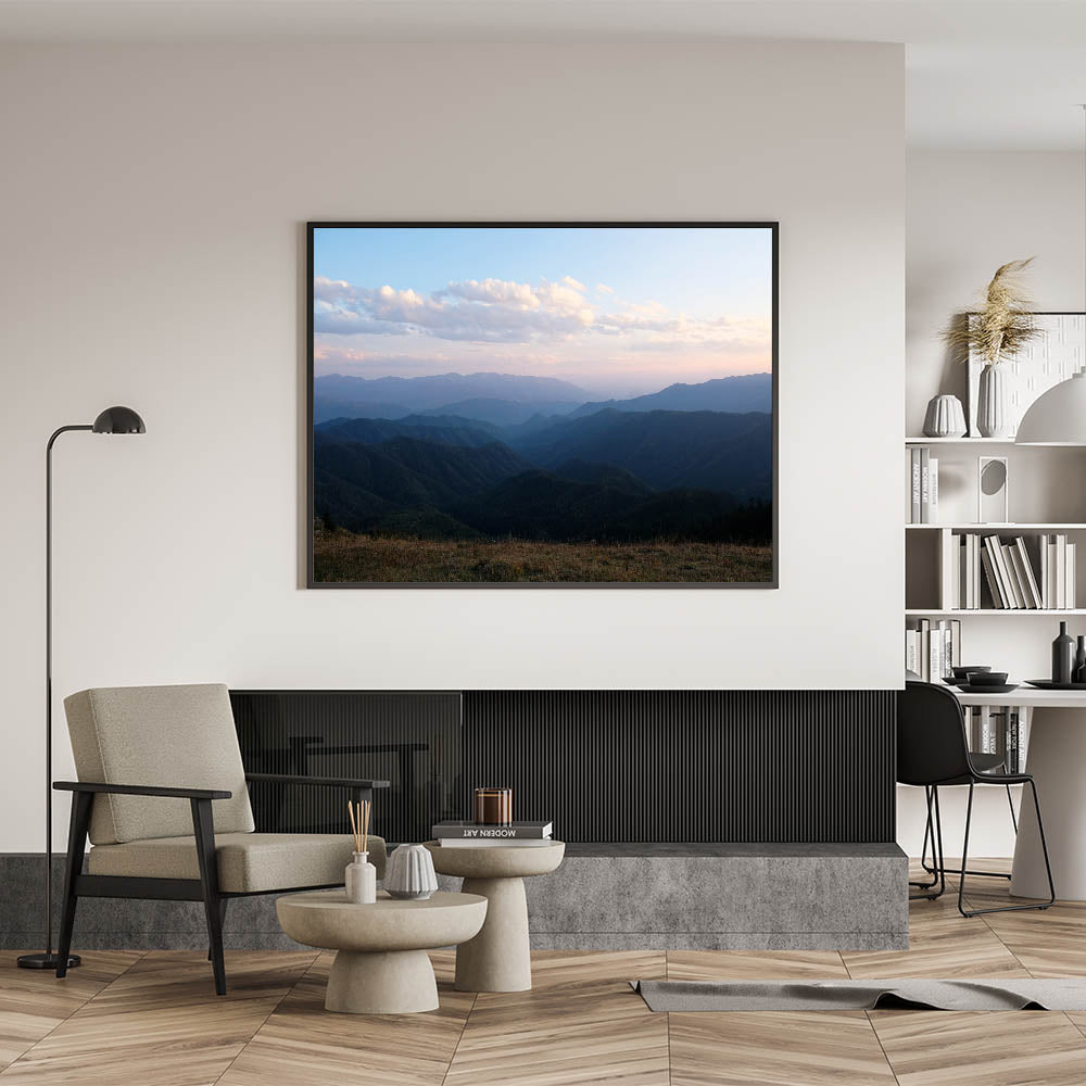 Capture the beauty of nature with this serene Georgia mountain landscape art. The rolling hills and soft hues of the horizon create a calming and tranquil atmosphere, perfect for bringing a touch of the outdoors into your home. This piece of Georgia landscape photography showcases the region's natural beauty, offering a peaceful escape from the everyday.
