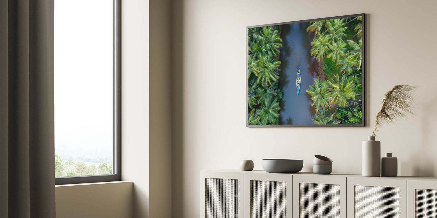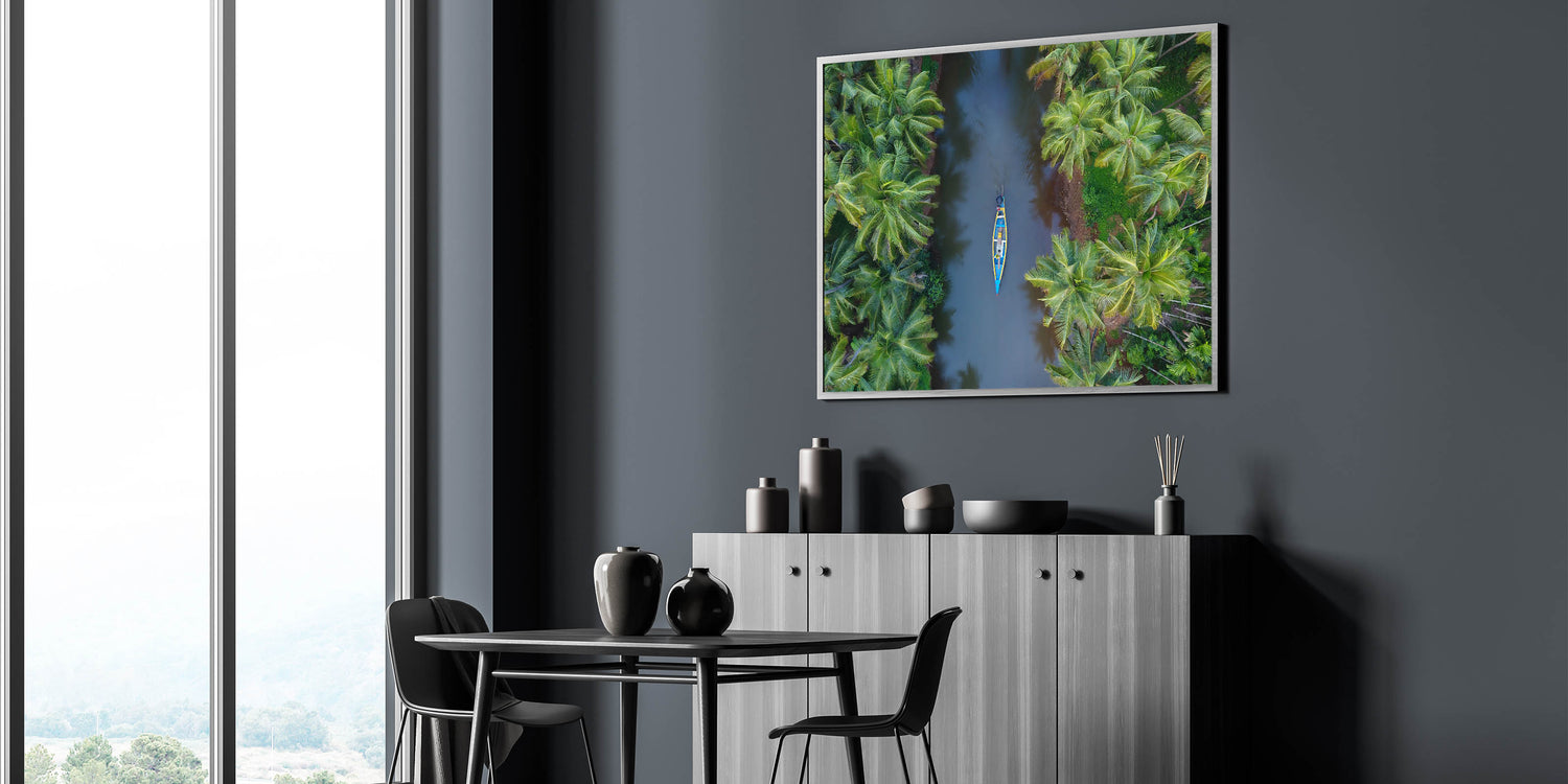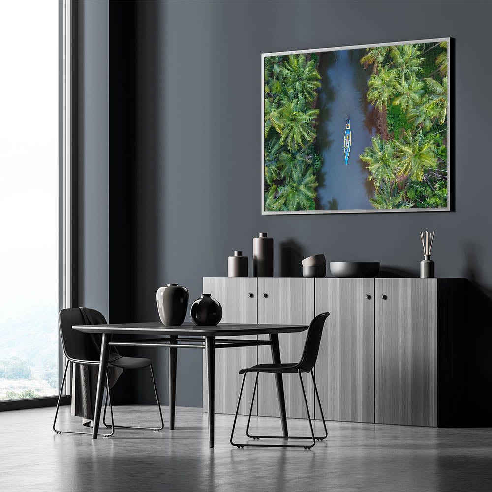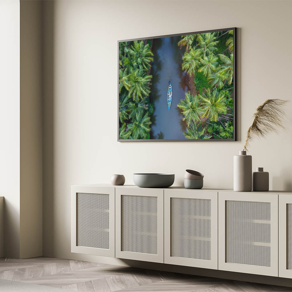 This Kerala backwater wall art captures the essence of peaceful tropical living and is sure to add a refreshing, calming presence to any space.