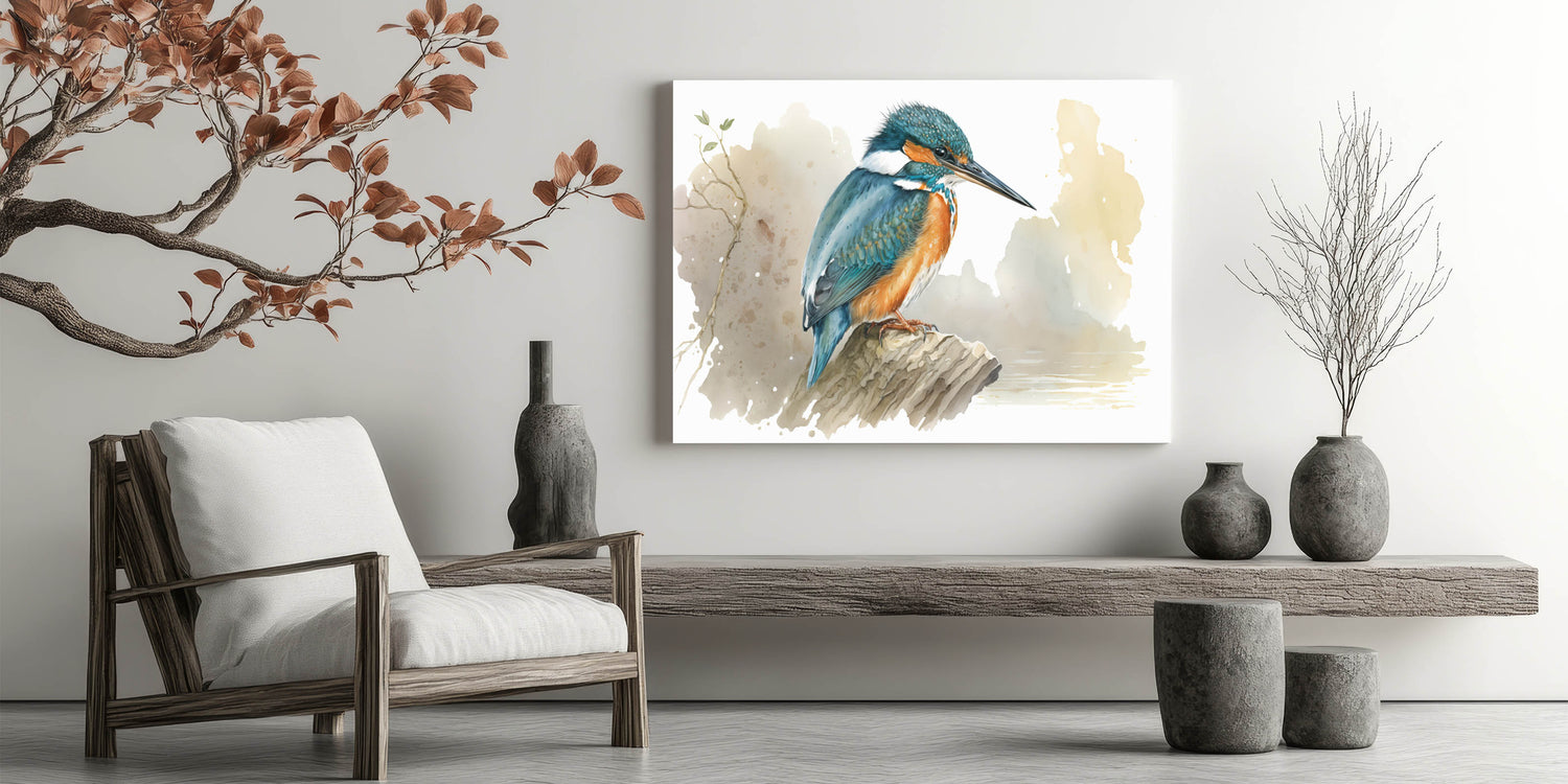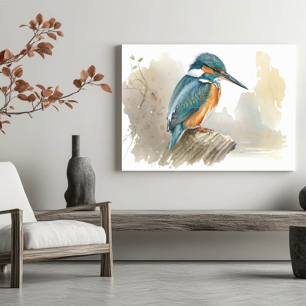 Bring the calm beauty of nature into your home with this Serene Kingfisher Wall Art. This artwork features a beautifully detailed kingfisher perched quietly by the water's edge, captured in soft, natural tones. The delicate colors and gentle brushstrokes create a peaceful scene that will bring a sense of tranquility to any space.
