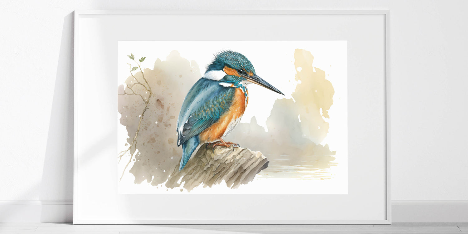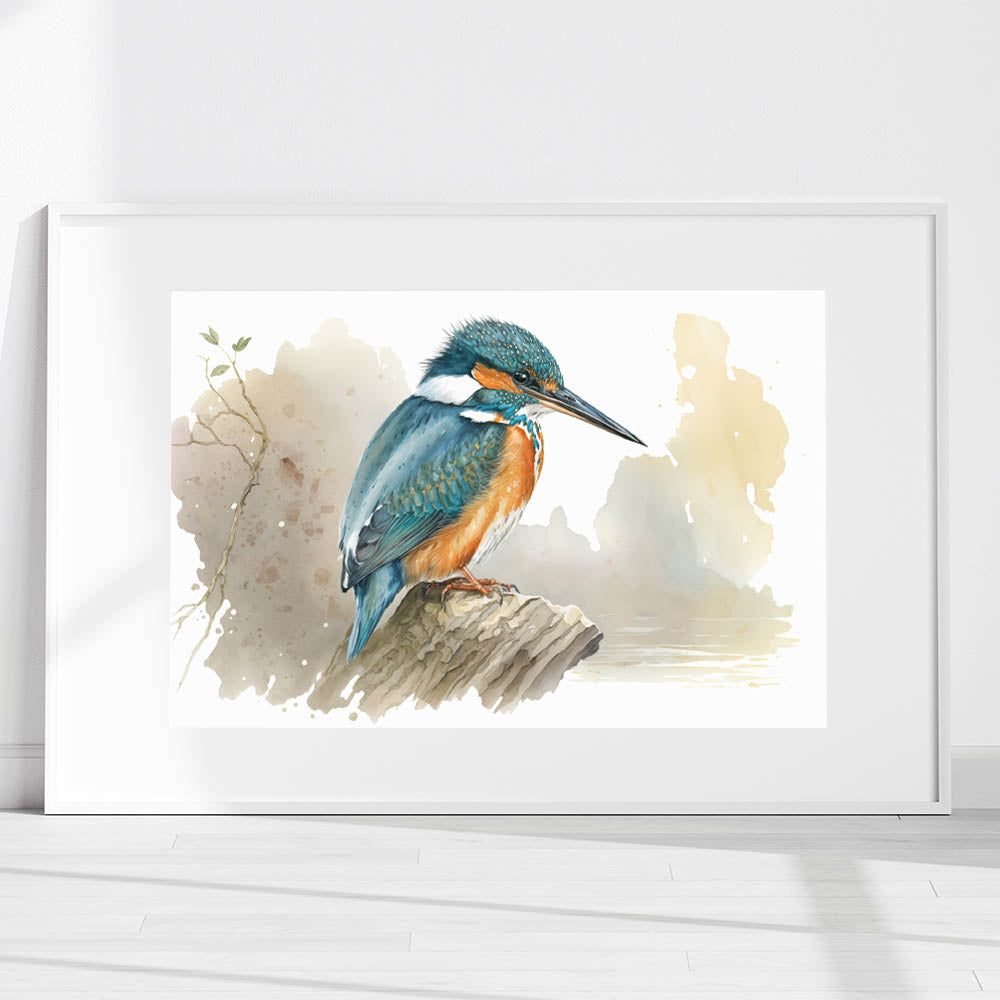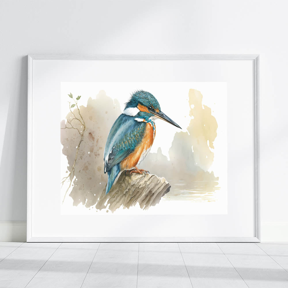 • Soft and Natural Tones: The muted blues, oranges, and earthy browns bring the kingfisher and its surroundings to life in a gentle and soothing manner.