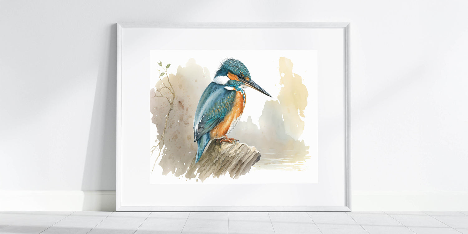 Serene Kingfisher Wall Art - Tranquil Bird Print Nature Decor