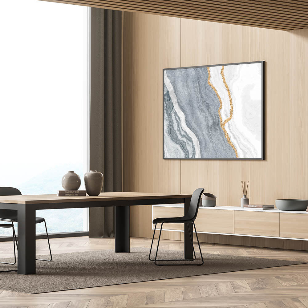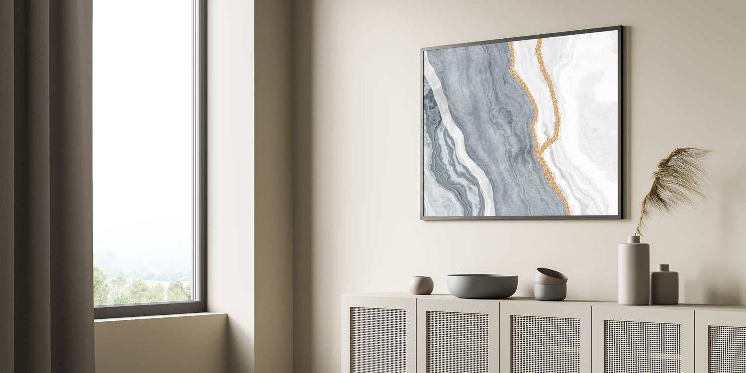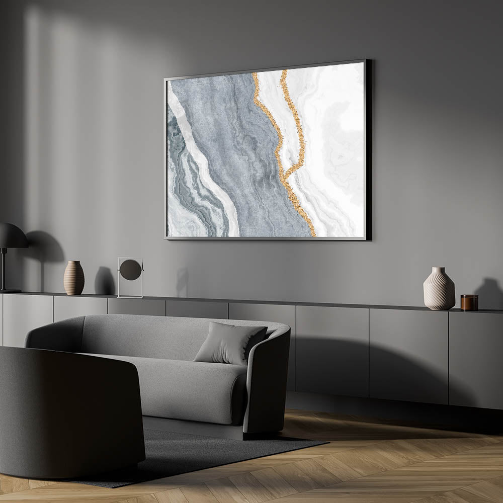 Bring tranquility and elegance to your space with the "Serene Marble Abstract Art" canvas. This beautiful artwork features intricate marble patterns in shades of blue, grey, and white, highlighted with delicate gold accents. The sophisticated blend of colors and textures creates a calming visual effect, making it a perfect addition to any modern or classic interior.