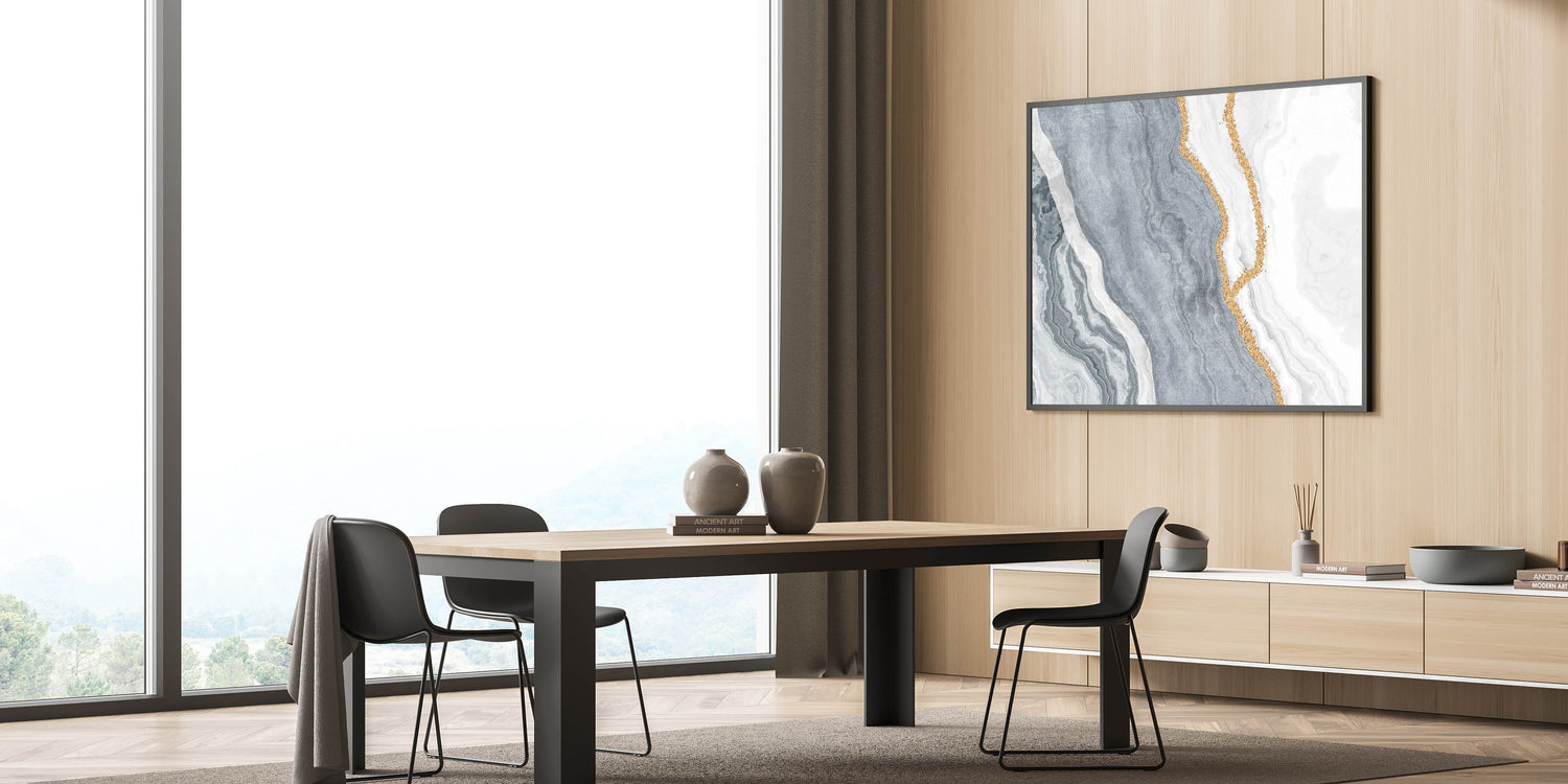 • Design: Elegant marble patterns with bold geometric lines and gold accents, ideal for enhancing your home or office décor.