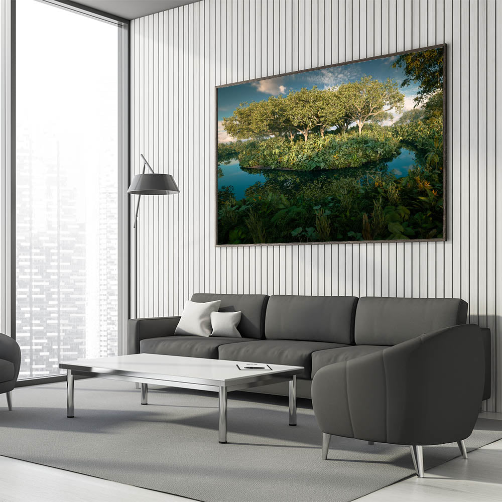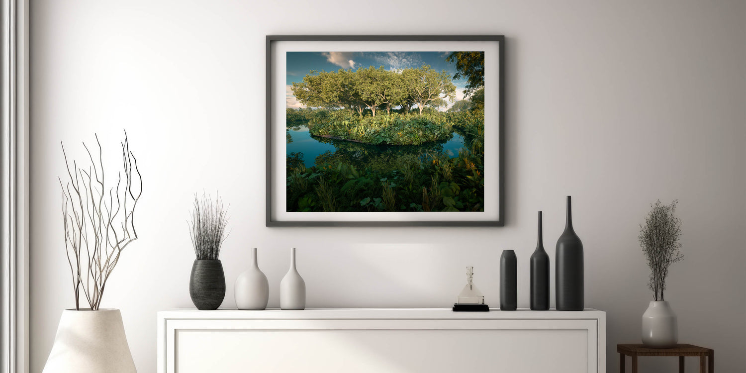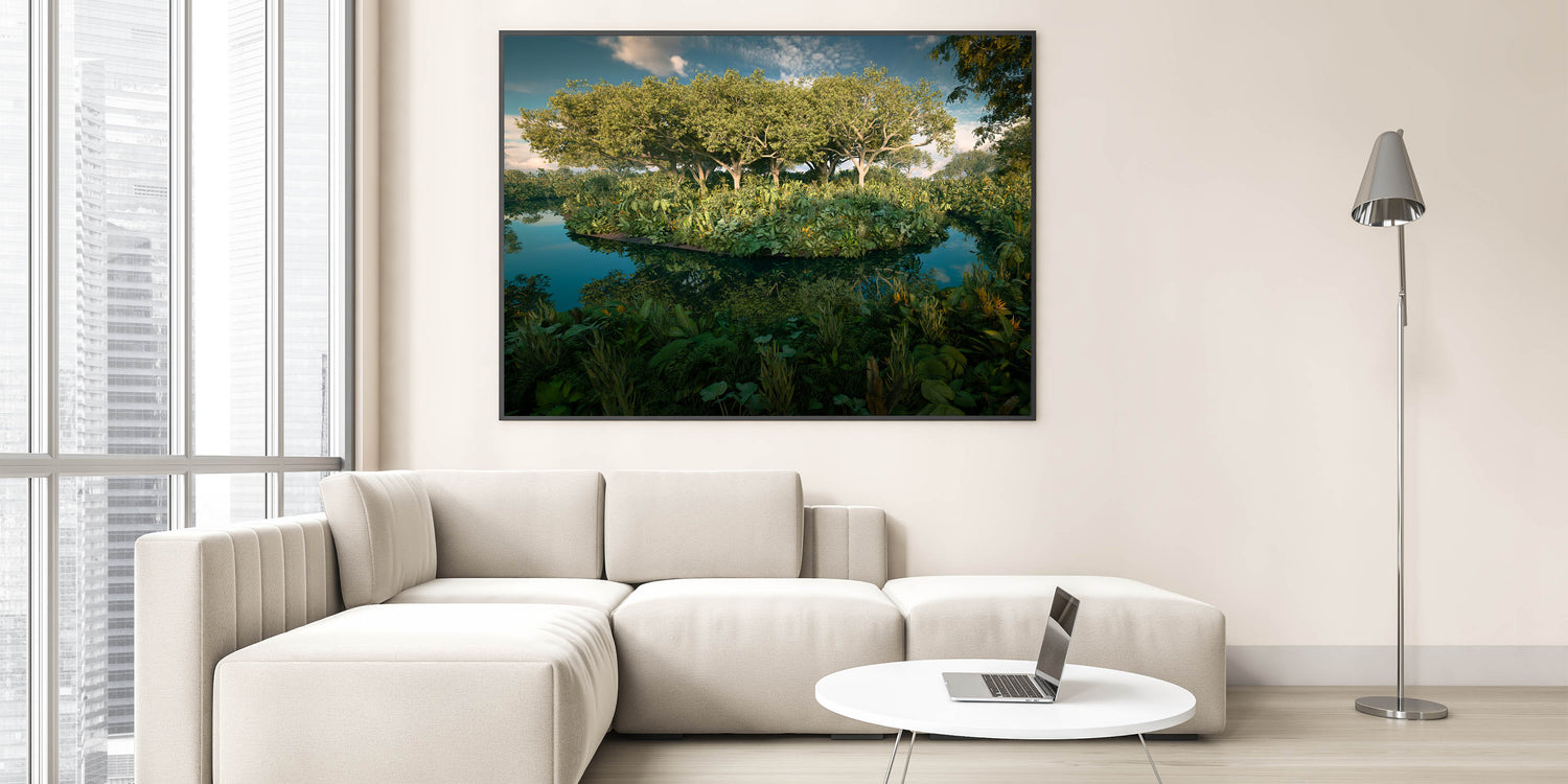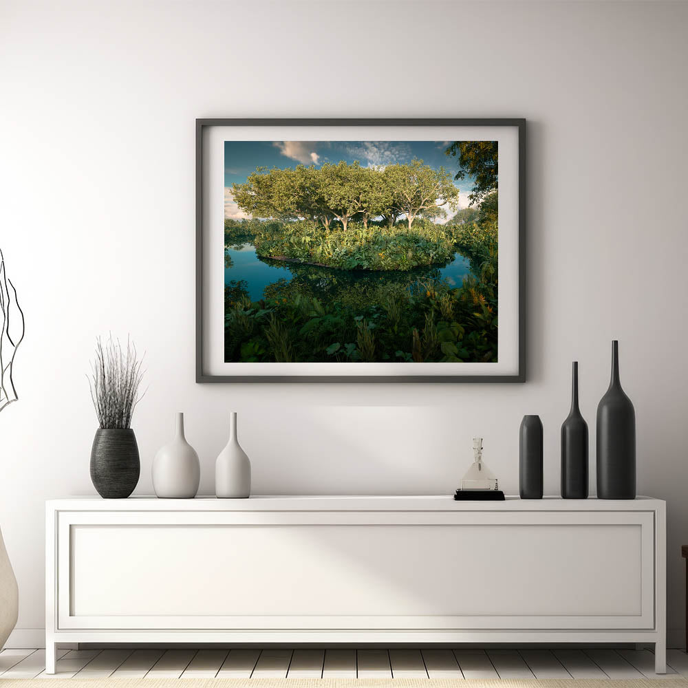 Enhance your home with this beautiful piece of rainforest art. Perfect for those who appreciate the peacefulness of nature, this tranquil jungle landscape print will bring a touch of serenity to your space.