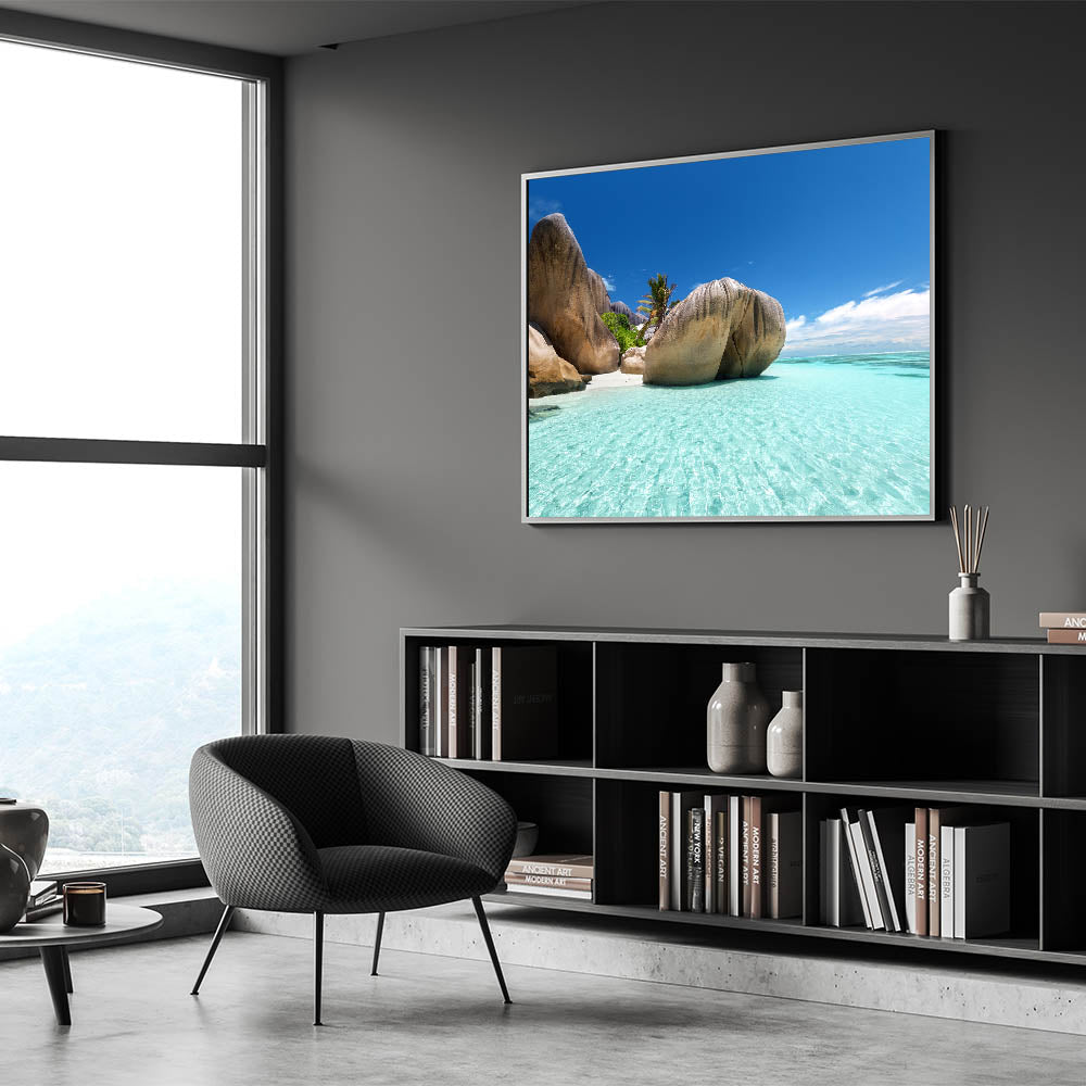 Transform your space with this serene Seychelles beach photography print, a perfect addition for lovers of coastal decor and tropical island vibes. Whether you’re decorating your living room or office, this art will bring the tranquil beauty of Seychelles into your everyday life.
