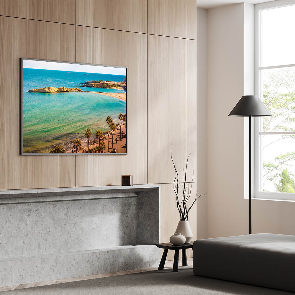 Capture the serene beauty of Tunisia’s Mediterranean coastline with this vibrant wall art. The crystal-clear waters and golden sand create a breathtaking view of the beach, lined with palm trees and overlooking a peaceful turquoise sea. This artwork offers a perfect balance of natural beauty and tranquility, making it an ideal choice for anyone looking to add a relaxing, coastal touch to their space.
