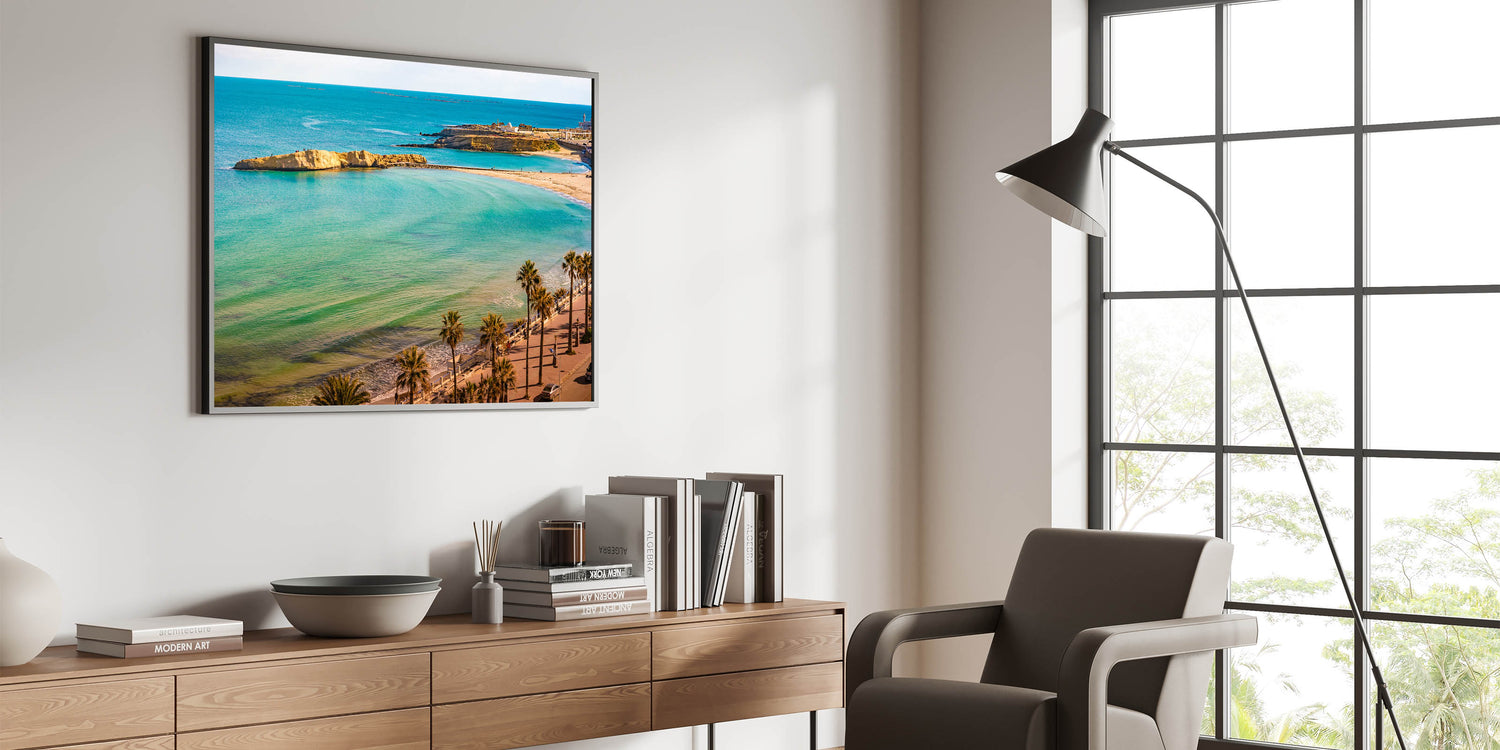 - High-quality print with vivid colors that showcase the stunning blues and greens of the Mediterranean sea.
