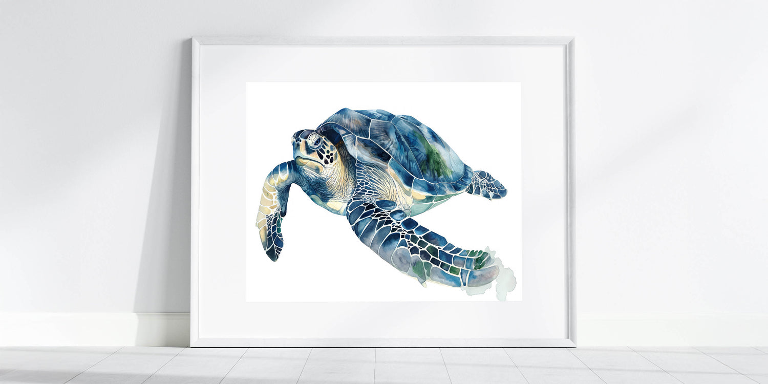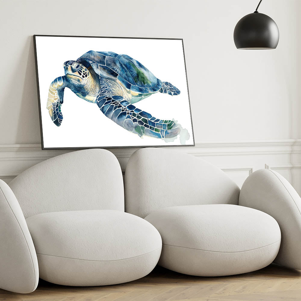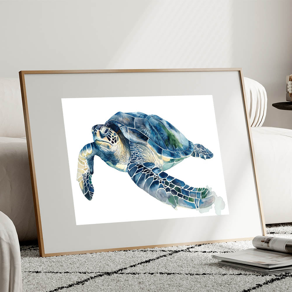This turtle art print is more than just decor; it's a window into the serene underwater world. Whether you're decorating a coastal-themed room or simply love the calmness of marine life, this piece will add a peaceful and elegant touch to your home. Discover more ocean-inspired art in our collection.