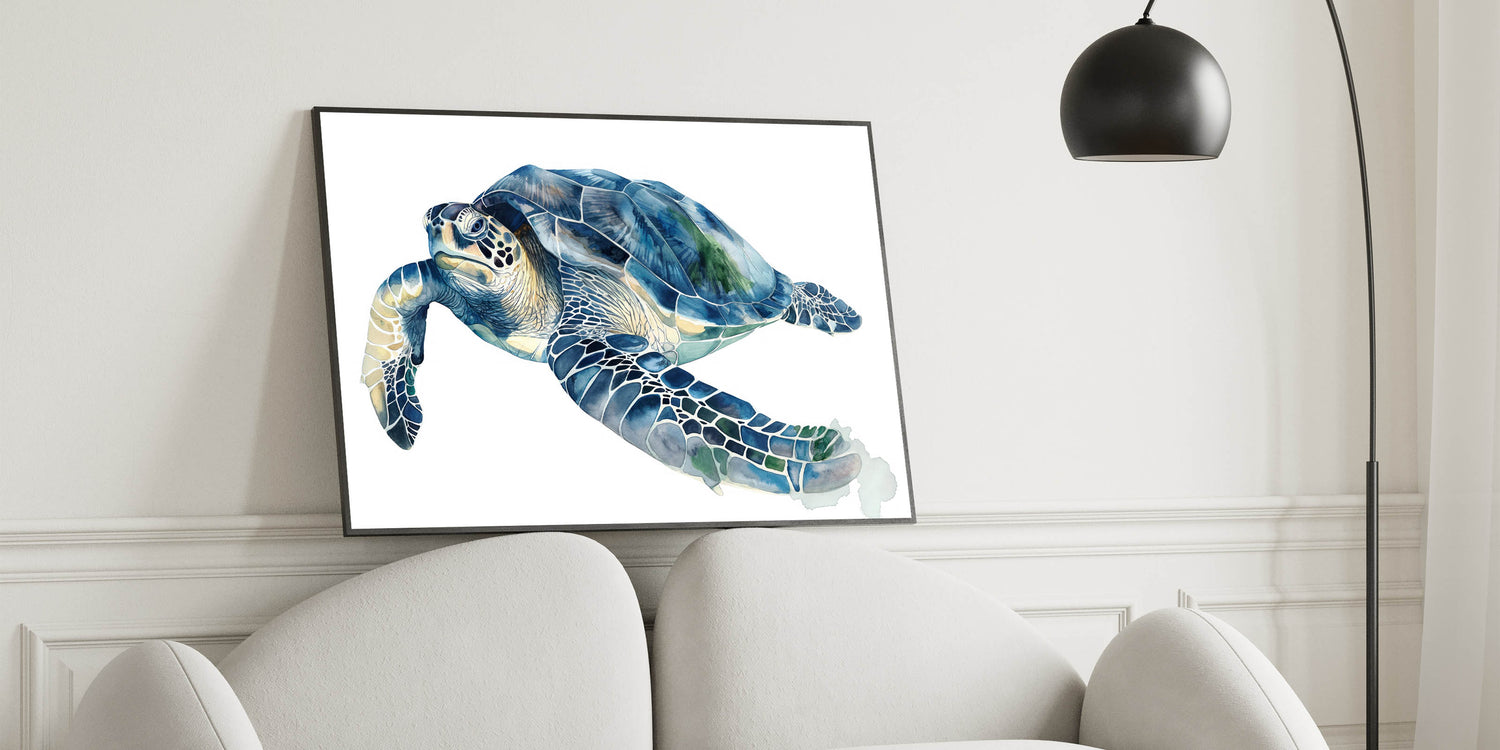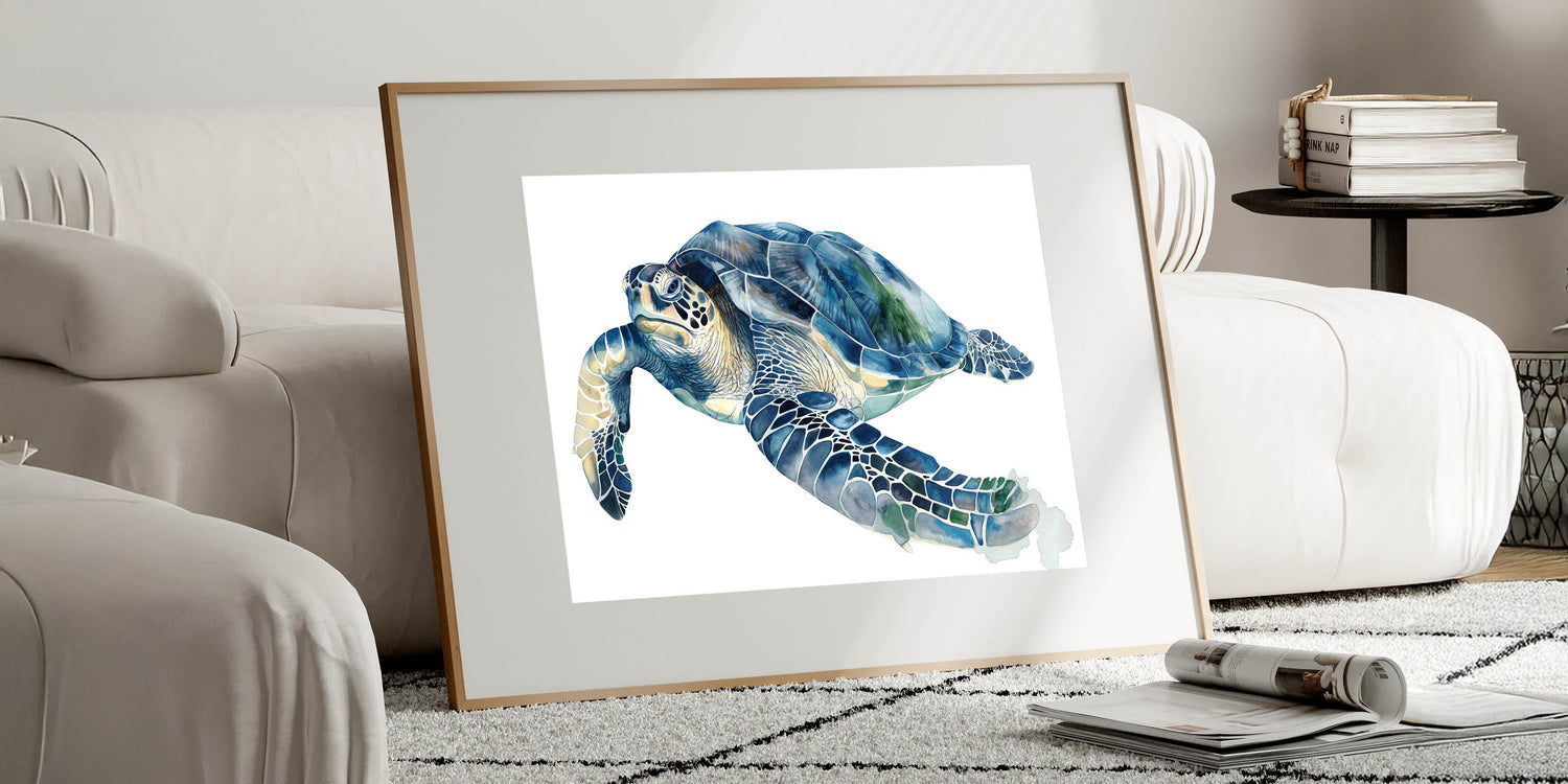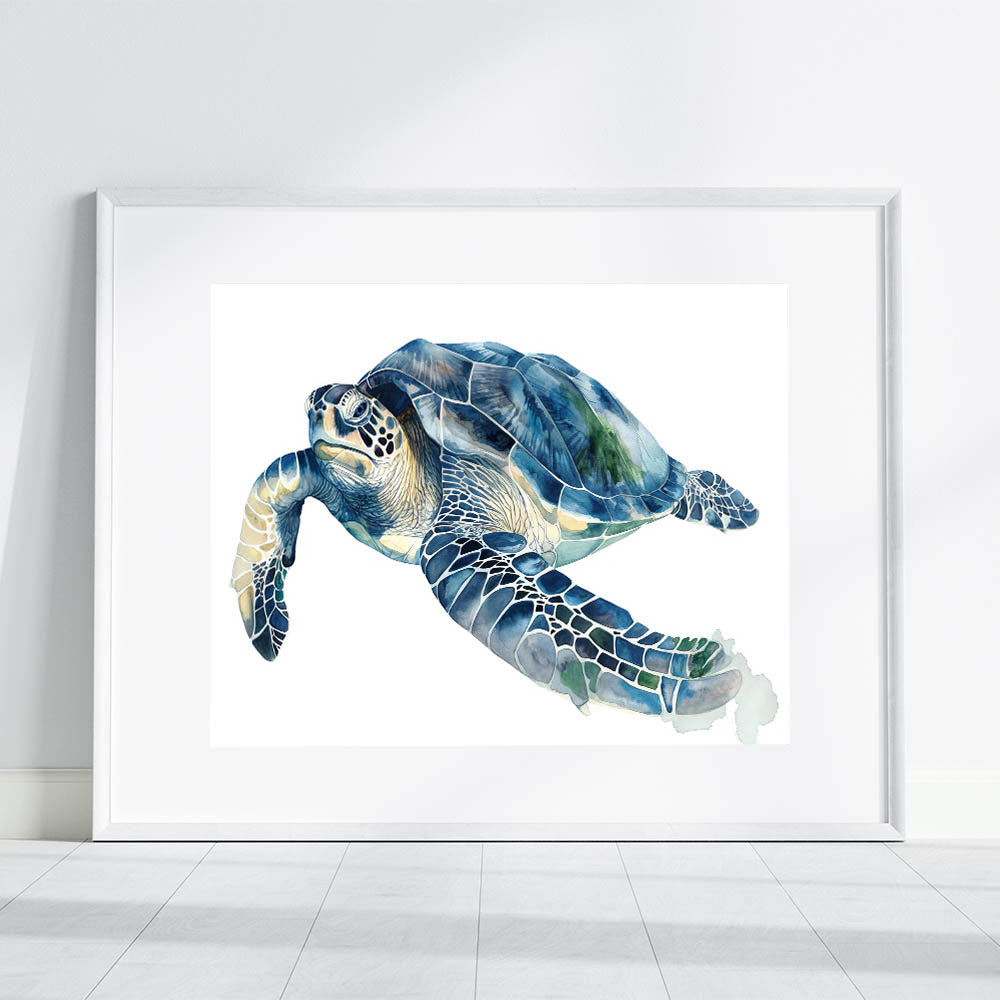 This turtle art print is more than just decor; it's a window into the serene underwater world. Whether you're decorating a coastal-themed room or simply love the calmness of marine life, this piece will add a peaceful and elegant touch to your home. Discover more ocean-inspired art in our collection.