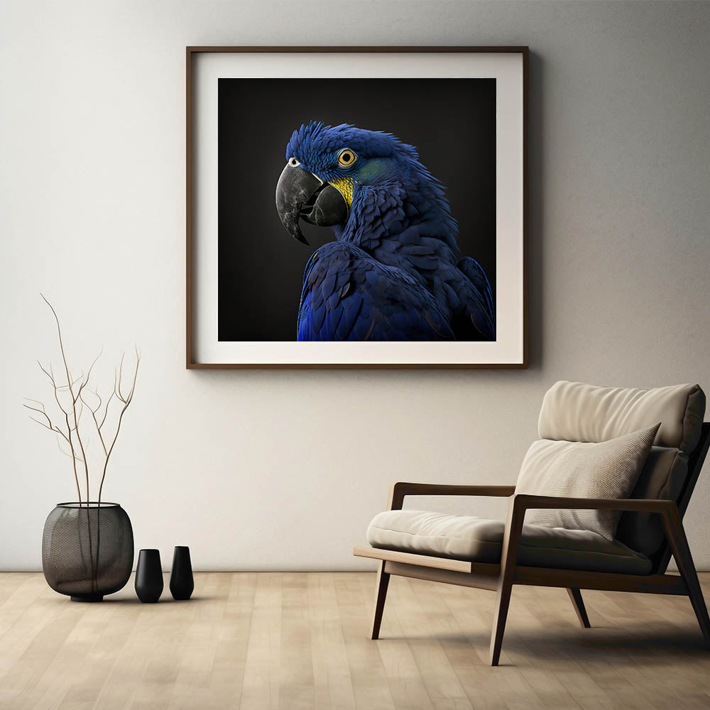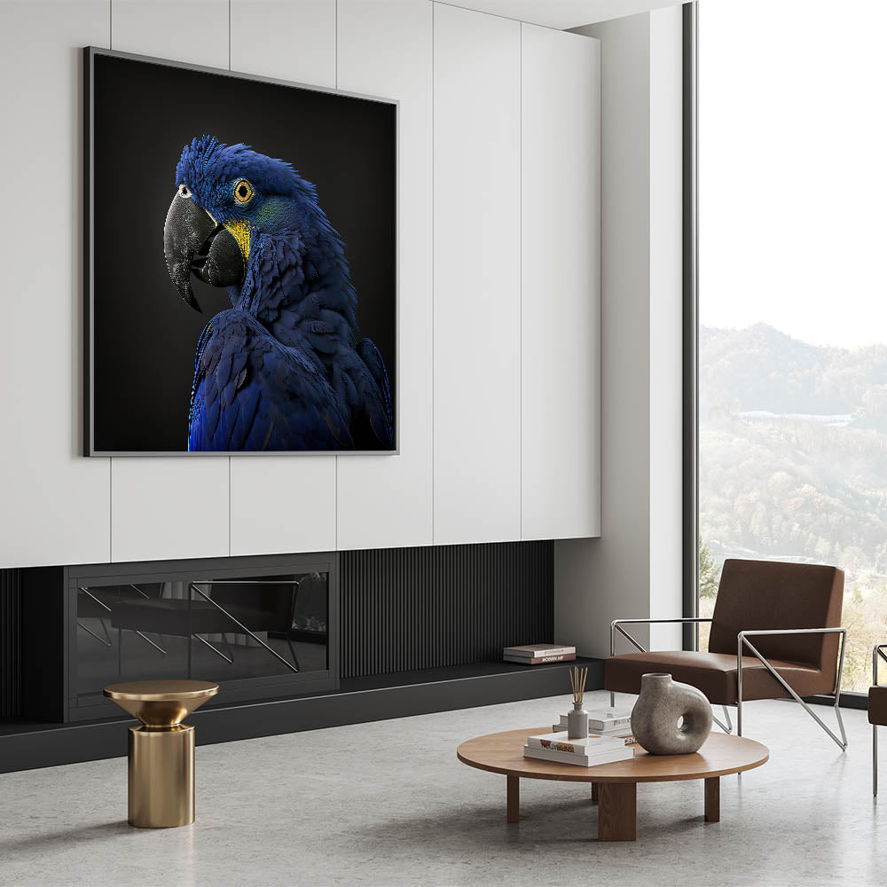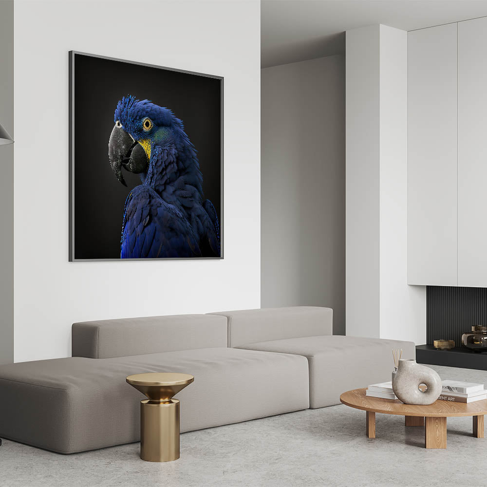 - High-definition print with deep, rich colors that enhance the macaw’s majestic appearance