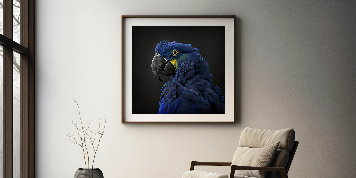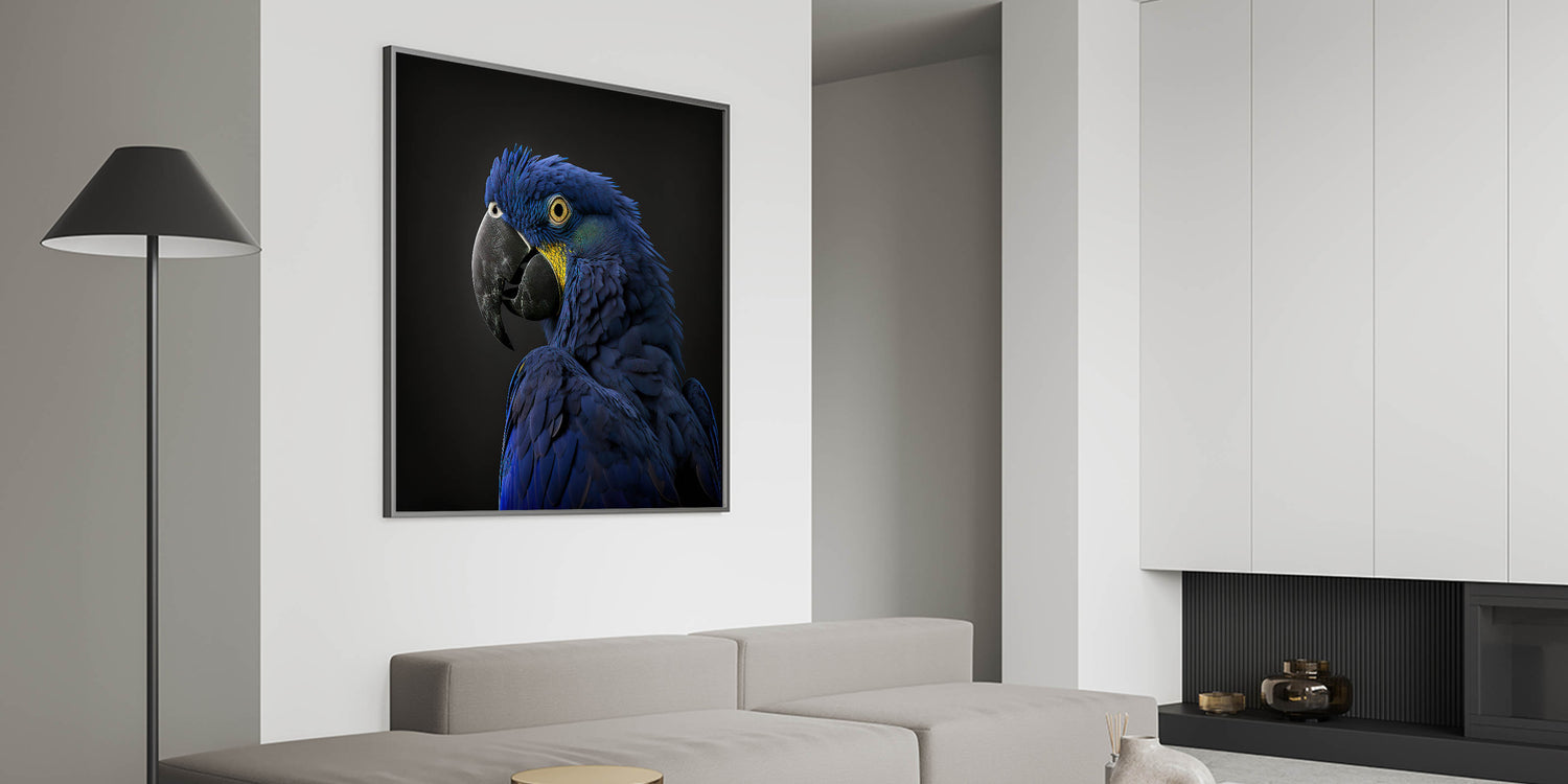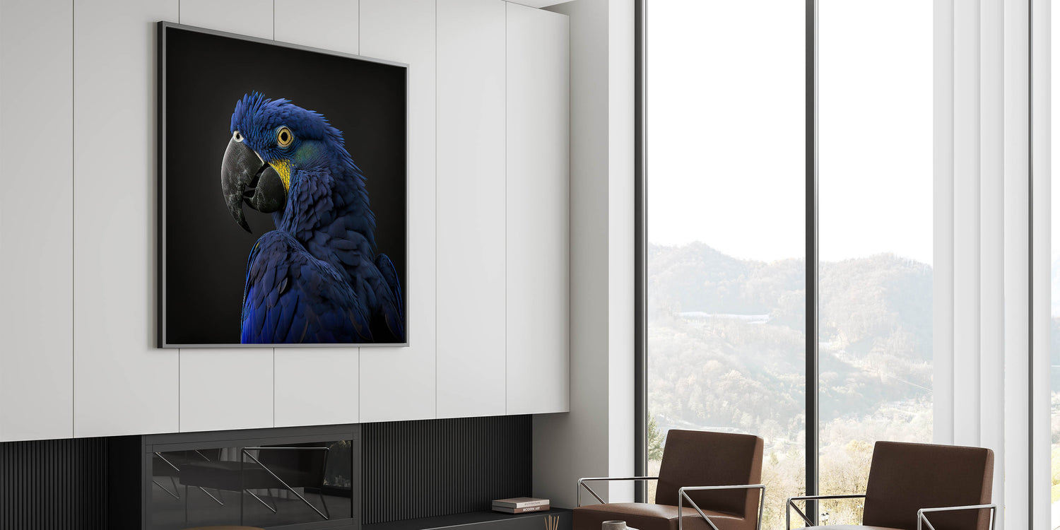 - High-definition print with deep, rich colors that enhance the macaw’s majestic appearance