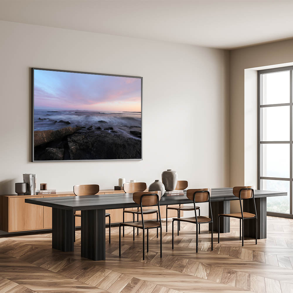 Enhance your decor with this stunning sunset landscape from Acadia National Park. Whether you prefer canvas or framed prints, this artwork will bring the beauty of Maine’s iconic natural scenery into any space.