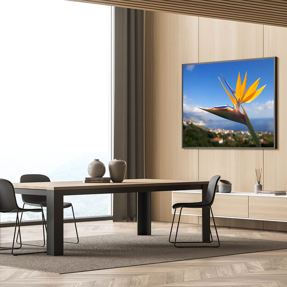 Add a burst of color and elegance to your living room, bedroom, or office with this Bird of Paradise floral print. Whether you’re seeking to brighten up your space or make a bold statement, this piece is the perfect addition to your collection of vivid botanical canvas art.