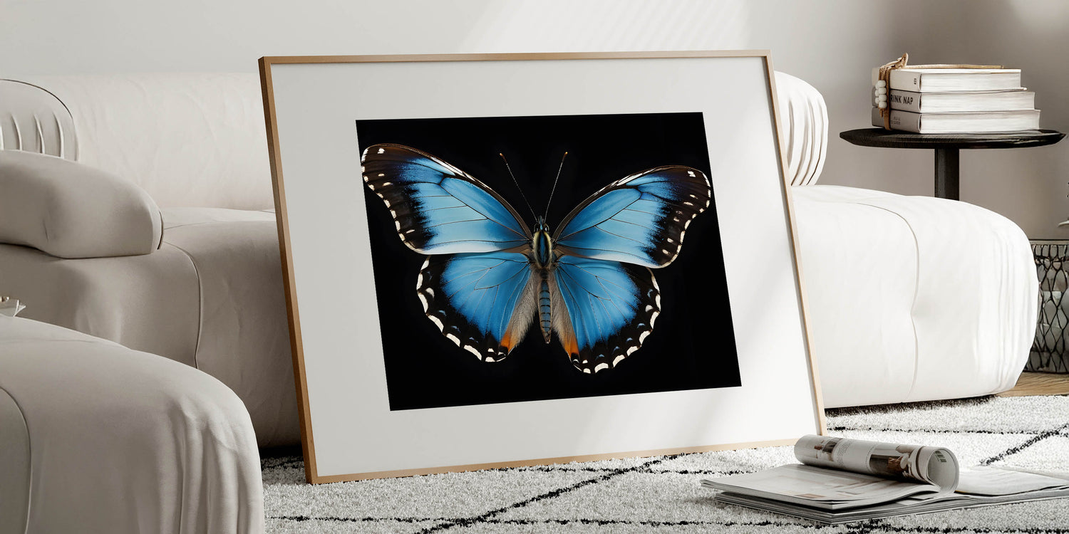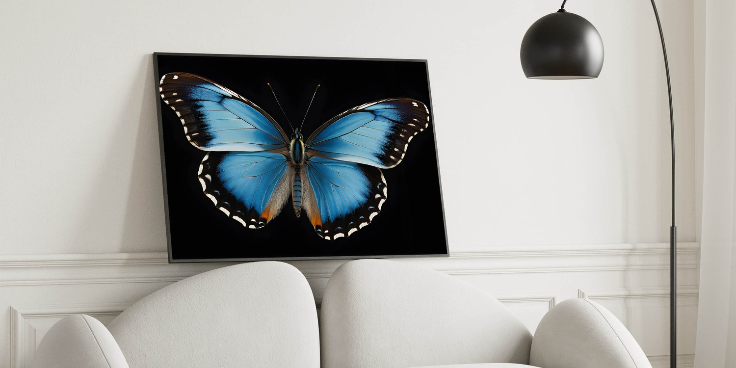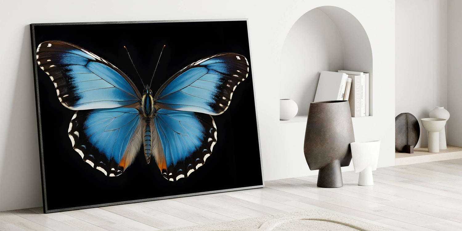 Bring the allure of nature into your home with this captivating butterfly artwork. Its striking blue tones and elegant design are sure to make it a cherished piece in any collection.