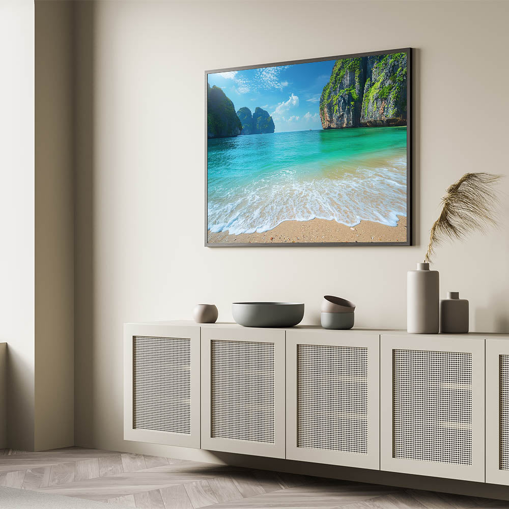Bring the essence of a tropical getaway into your home with this exquisite beach wall art. Perfect for those who love the ocean and want to create a peaceful retreat in their living space.