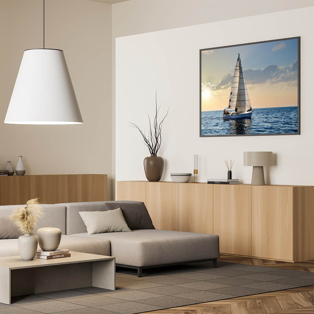 Bring the tranquility of the ocean into your home with this stunning rowboat wall art. Featuring a peaceful sunset scene, this artwork captures the gentle sway of a rowboat as it drifts on calm waters. The warm, golden hues of the setting sun blend seamlessly with the soft blues of the ocean, creating a harmonious coastal vibe. Perfect for beach homes or anyone looking to add a touch of nautical charm to their space, this handcrafted boat art is available in a variety of high-quality materials, including Stretched Canvas, Framed Canvas, Acrylic Glass, Framed Acrylic Glass, Framed Print, Rolled Canvas, and Rolled Print.
