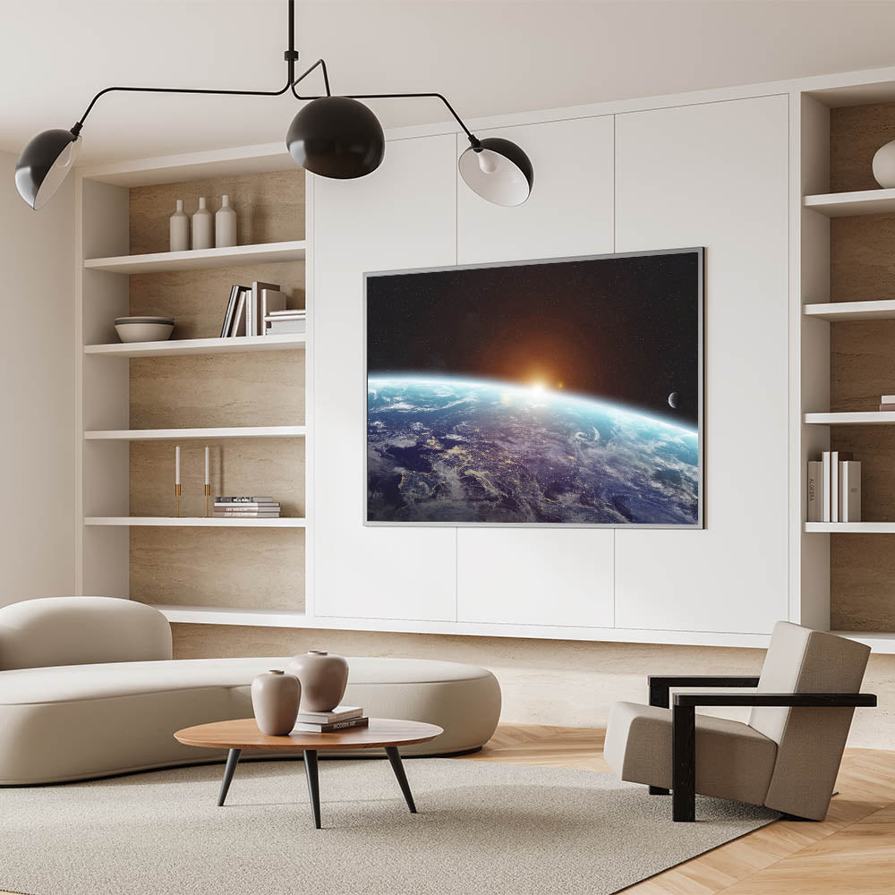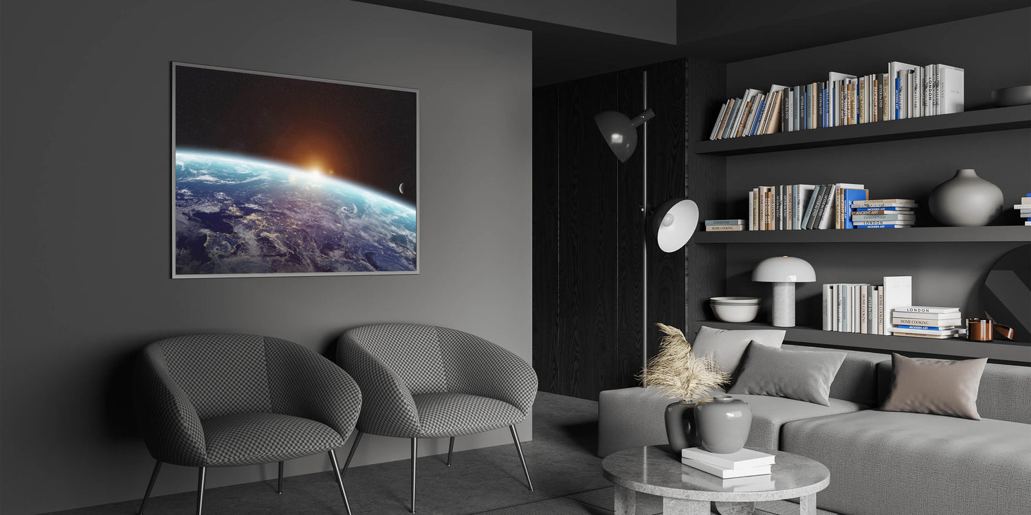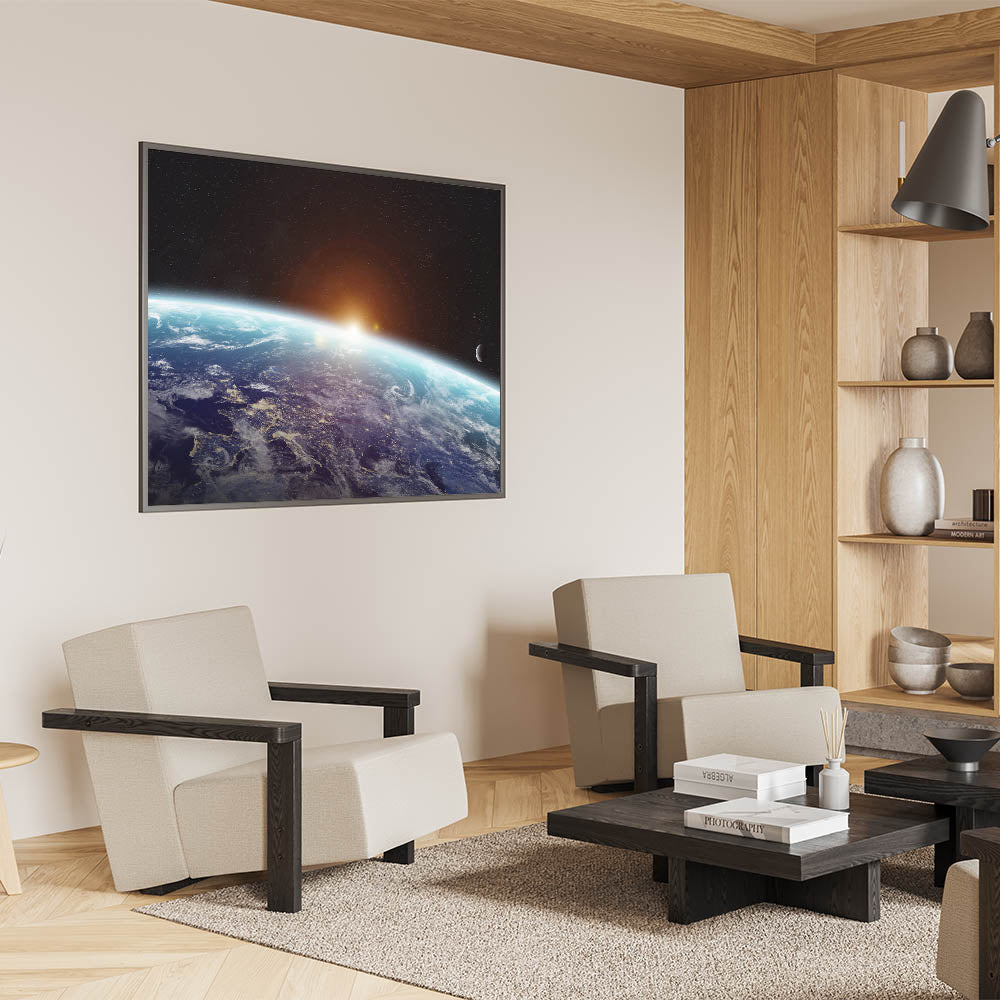 Sunrise Over Earth Wall Art - Space View of Earth with Moon Decor