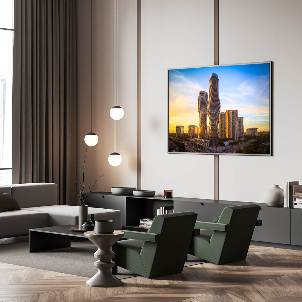 Perfect for fans of modern architecture, this Scenic Ontario Canvas brings the awe-inspiring design of the Absolute Towers into your home or office. Part of our Canadian Scenery Art collection, this high-quality print showcases the harmonious balance of urban living and artistic architectural innovation in Ontario.