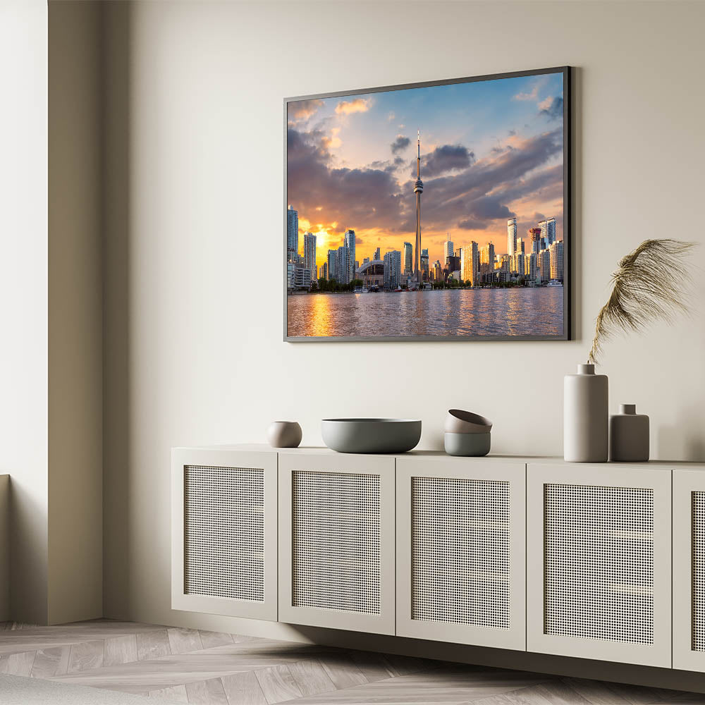 This Scenic Ontario Canvas is ideal for anyone who admires cityscapes or wants to bring a piece of Canada’s largest city into their home or office. Part of our Canadian Scenery Art collection, this piece not only highlights Toronto’s architecture but also showcases the tranquil beauty of an Ontario sunset.