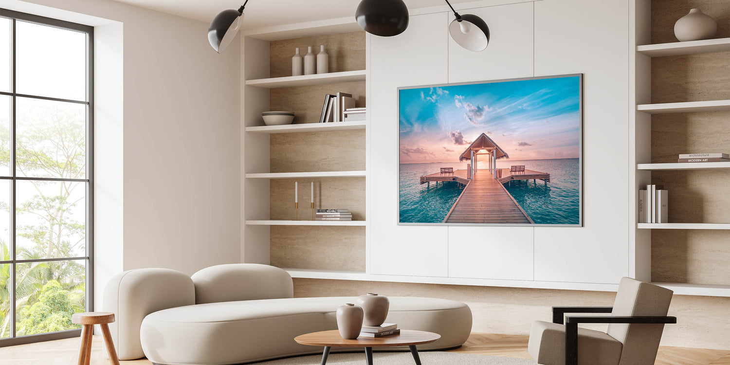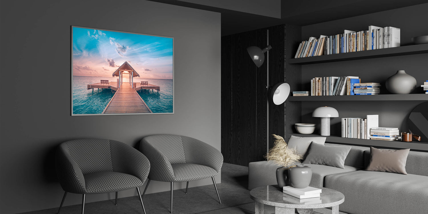 - Material Options: Available in acrylic glass, rolled print, and framed canvas.