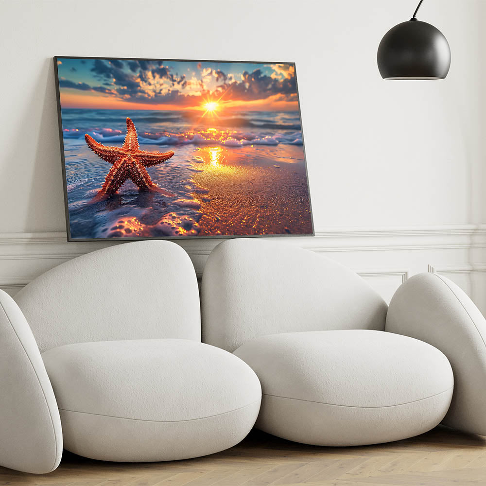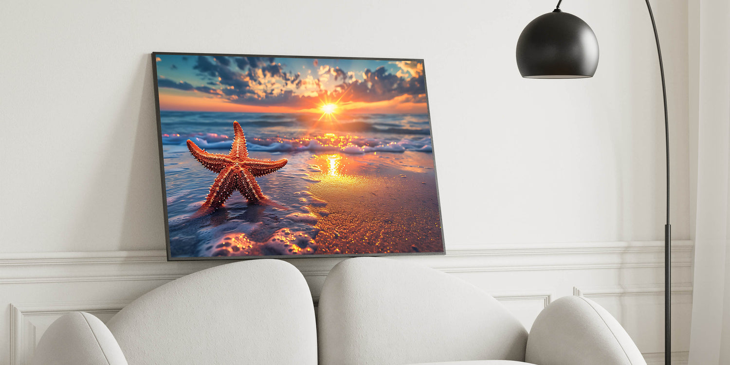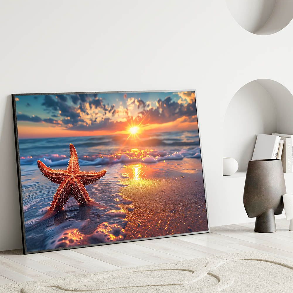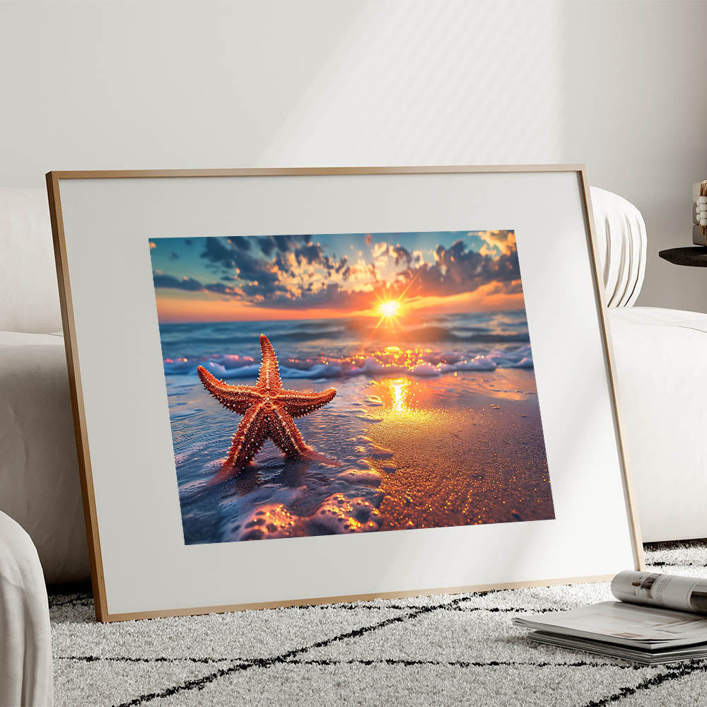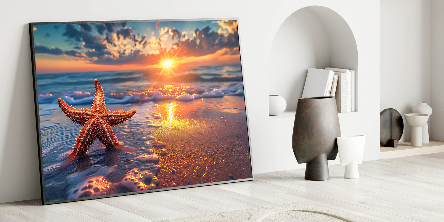 This sunset starfish art is perfect for anyone who loves the ocean and wants to bring the calming beauty of a beach sunset into their home. Whether you’re decorating a coastal-themed room or simply want to add warmth to your decor, this piece is sure to inspire relaxation and peace.