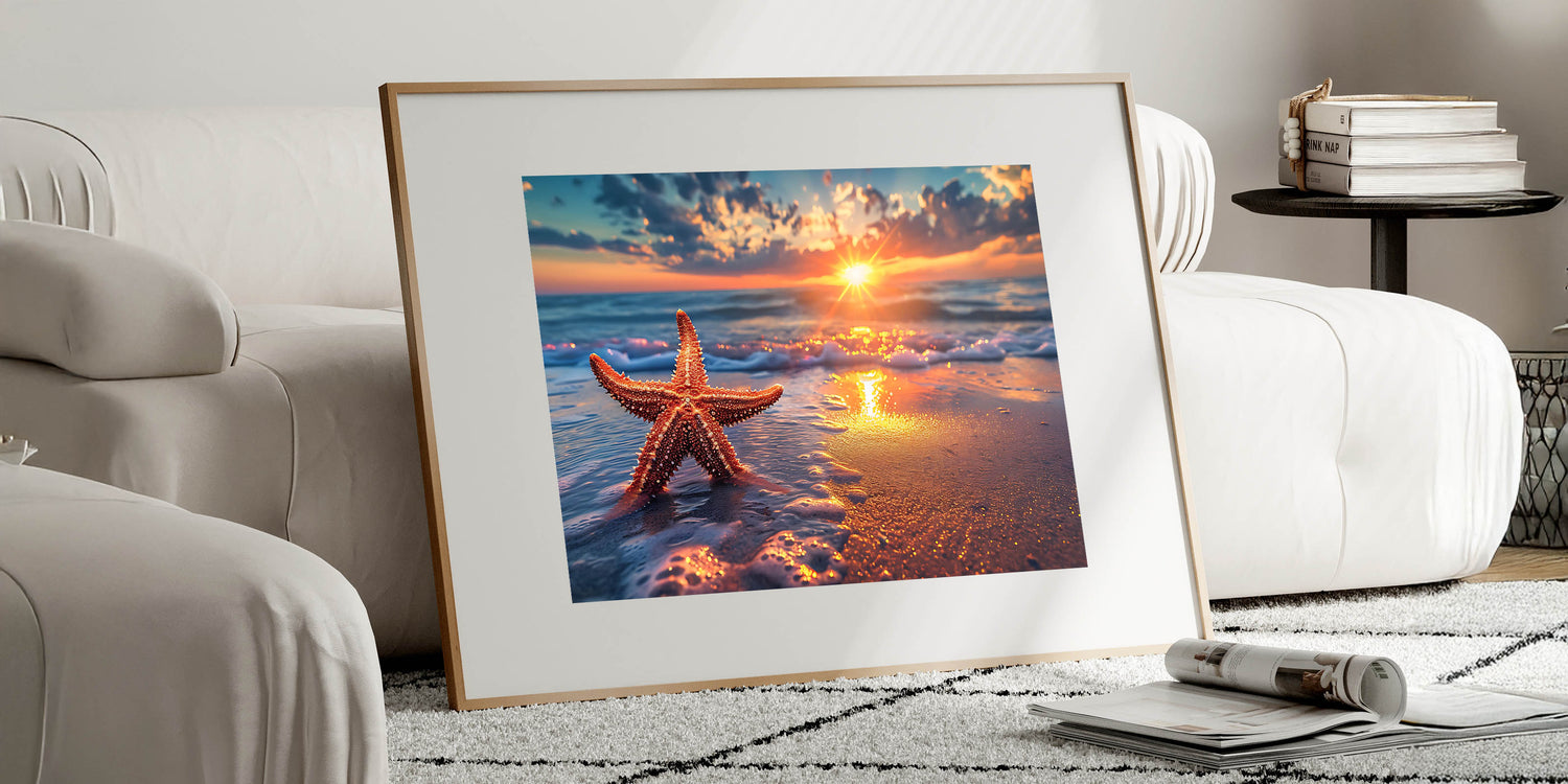 Sunset Starfish Wall Art - Coastal Beach Scene Canvas & Print Decor