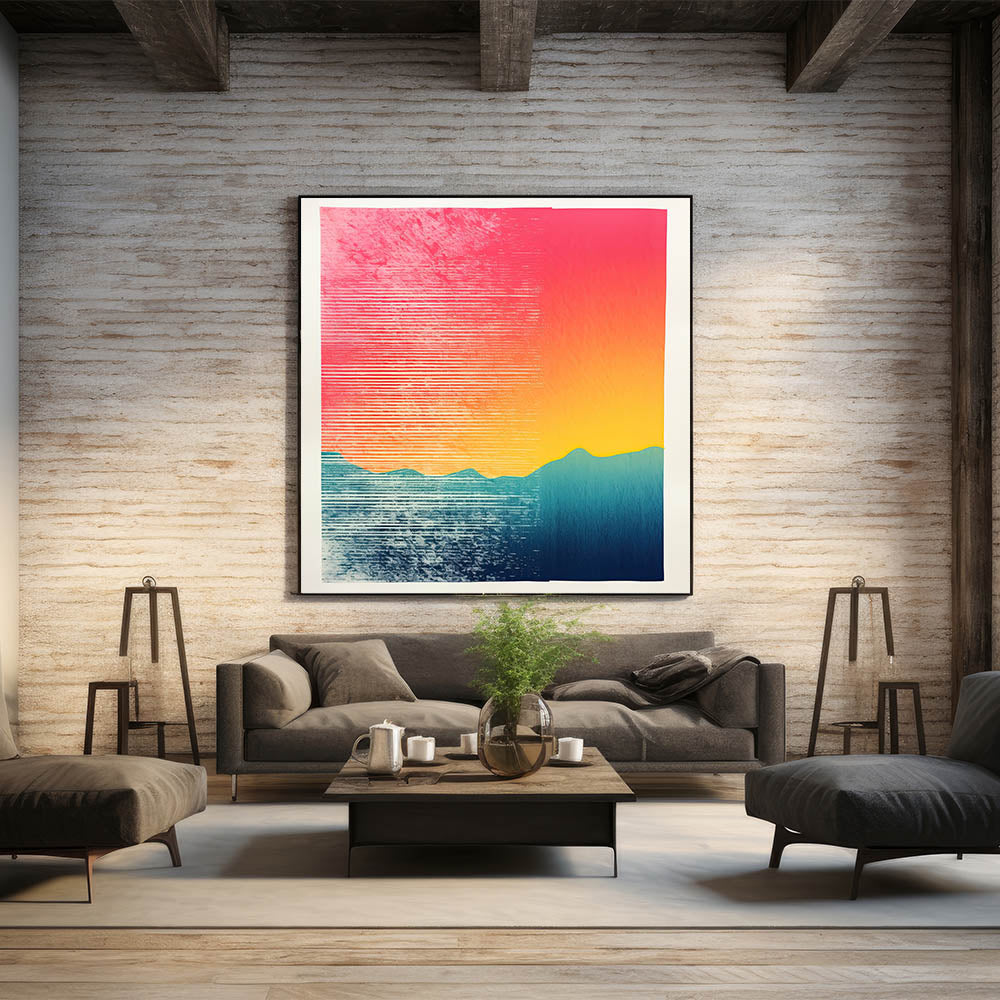 Elevate your space with our "Abstract Tahiti Sunset Canvas", a modern art interpretation of the enchanting Polynesian landscapes. This piece blends abstract forms and a bold color palette to depict a serene Tahitian sunset over tranquil waters.