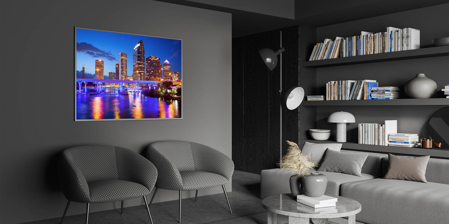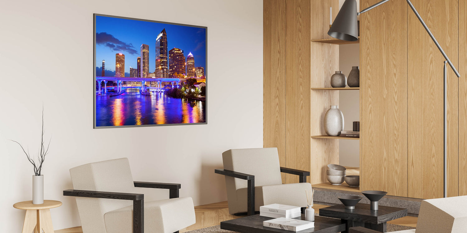 - High-quality Tampa cityscape art prints available in various sizes