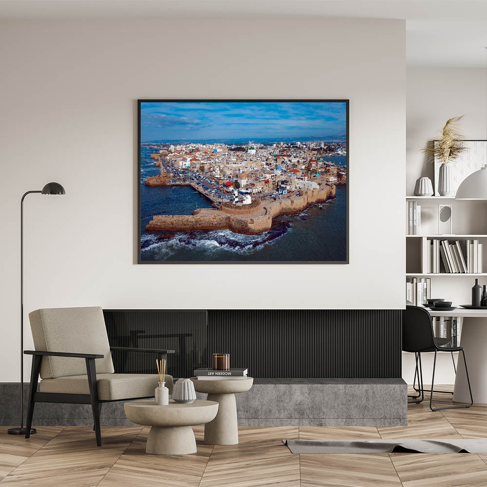 This captivating artwork is a stunning reminder of Israel’s rich cultural heritage and natural beauty. Whether you’re drawn to its historical architecture or the breathtaking coastal scenery, this print will elevate any room with its striking composition and vibrant details.