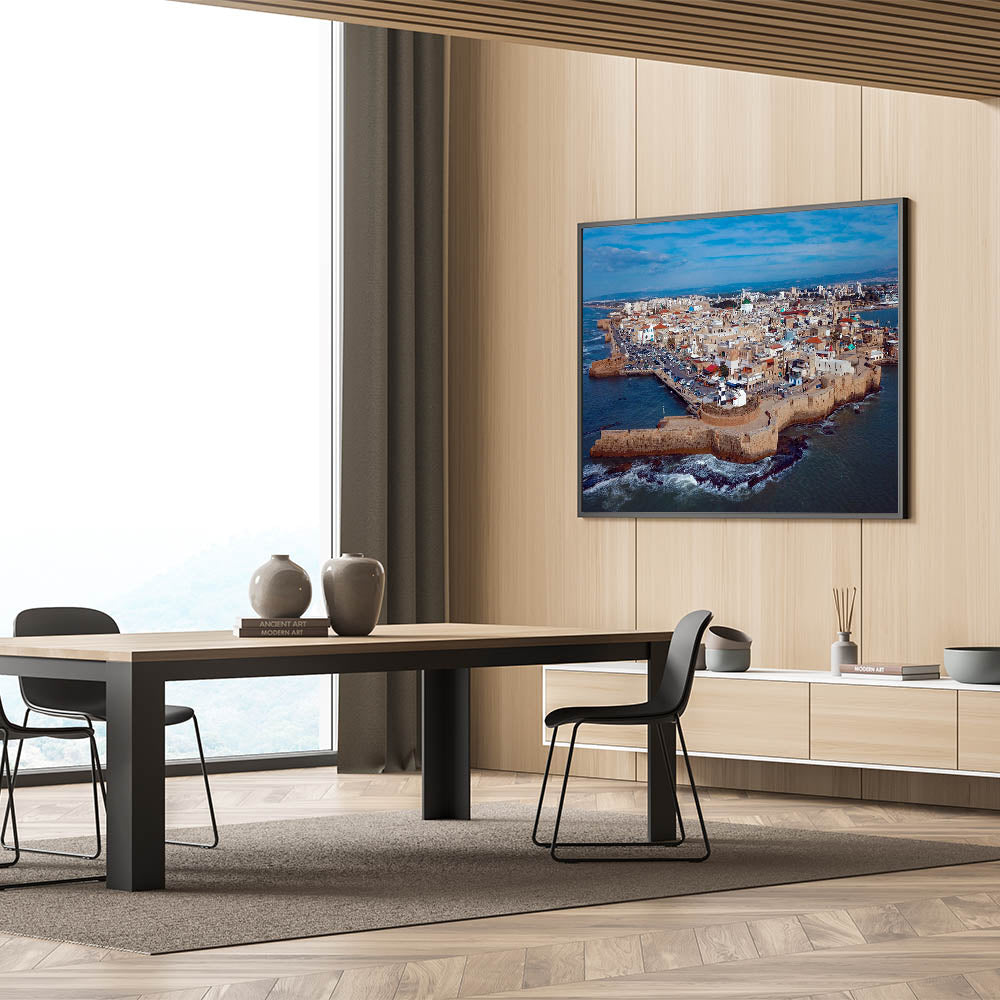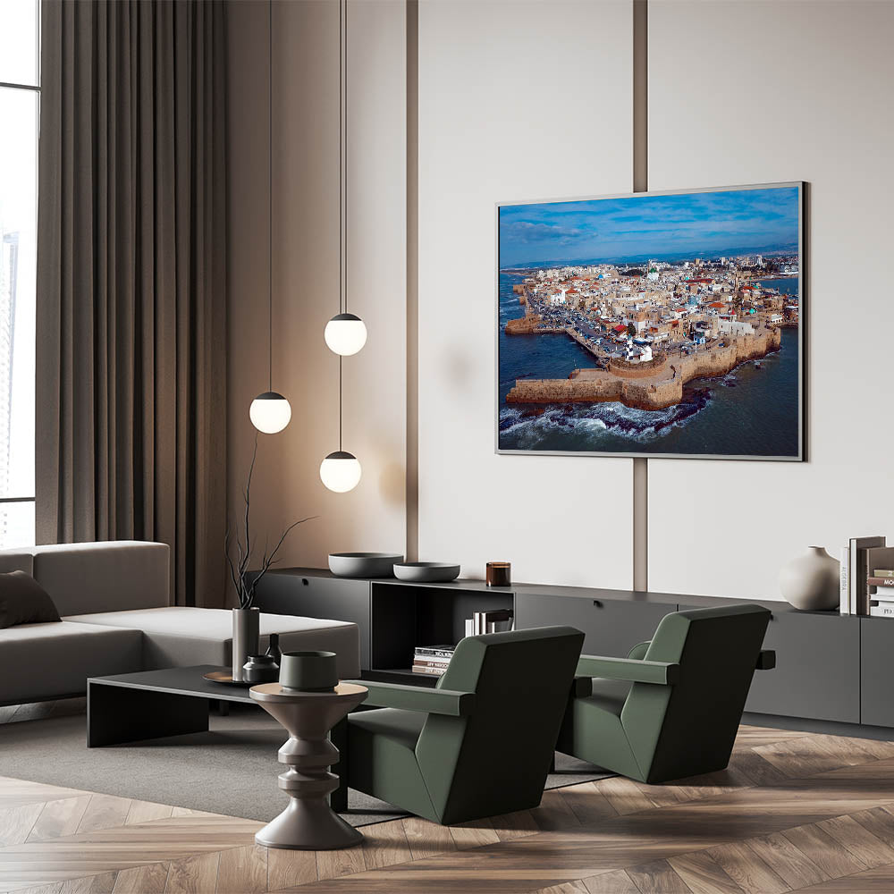 Capture the vibrant beauty of Israel’s coastline with this stunning Tel Aviv wall decor. This scenic photography showcases the timeless charm of a coastal city, where historic architecture meets the rolling waves of the Mediterranean Sea. Perfect for lovers of Middle Eastern art and scenic Israel photography, this artwork brings the essence of Tel Aviv’s vibrant landscape into your home or office.