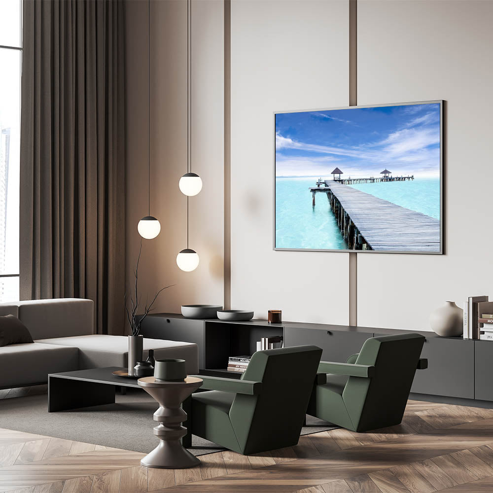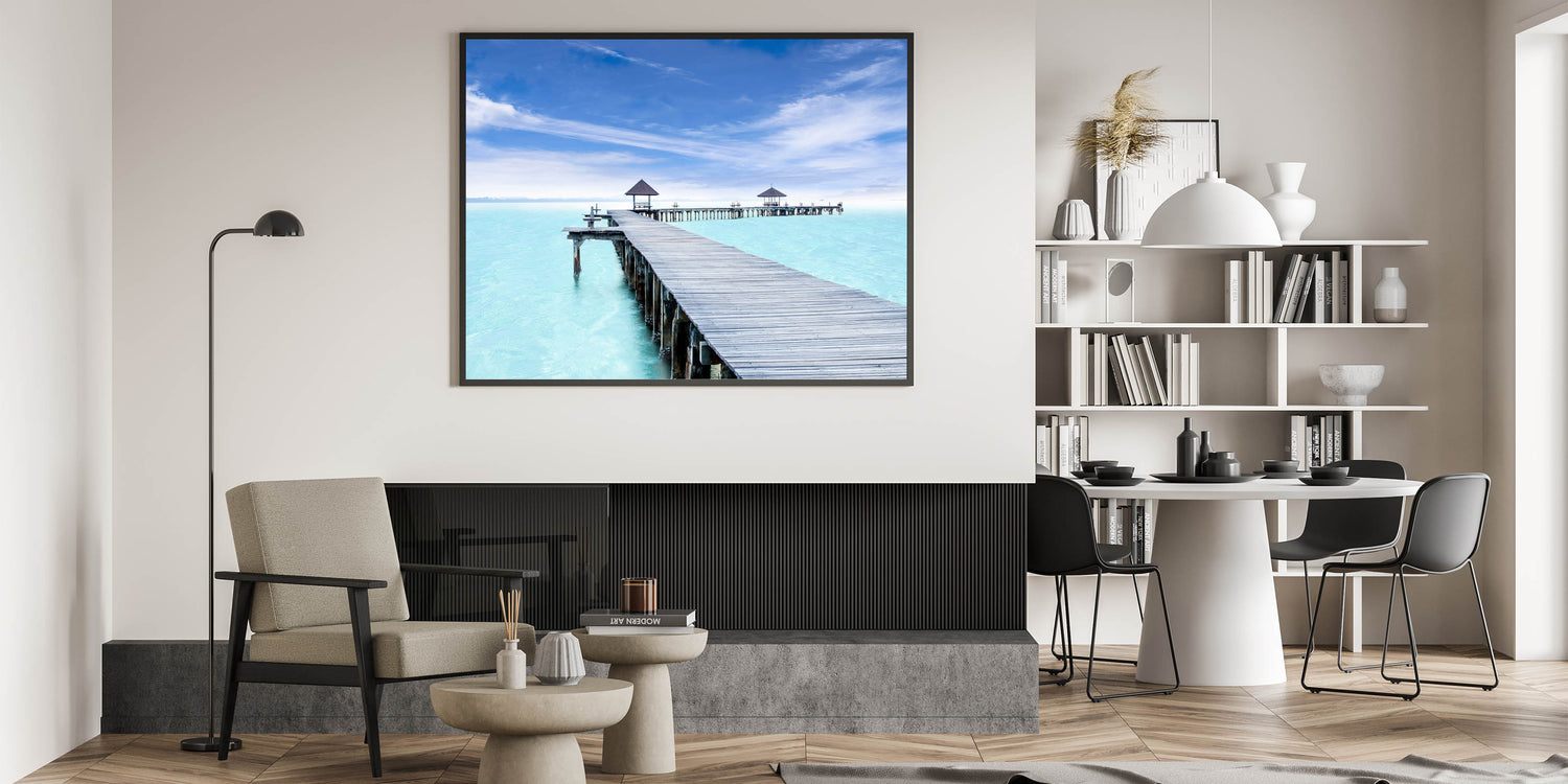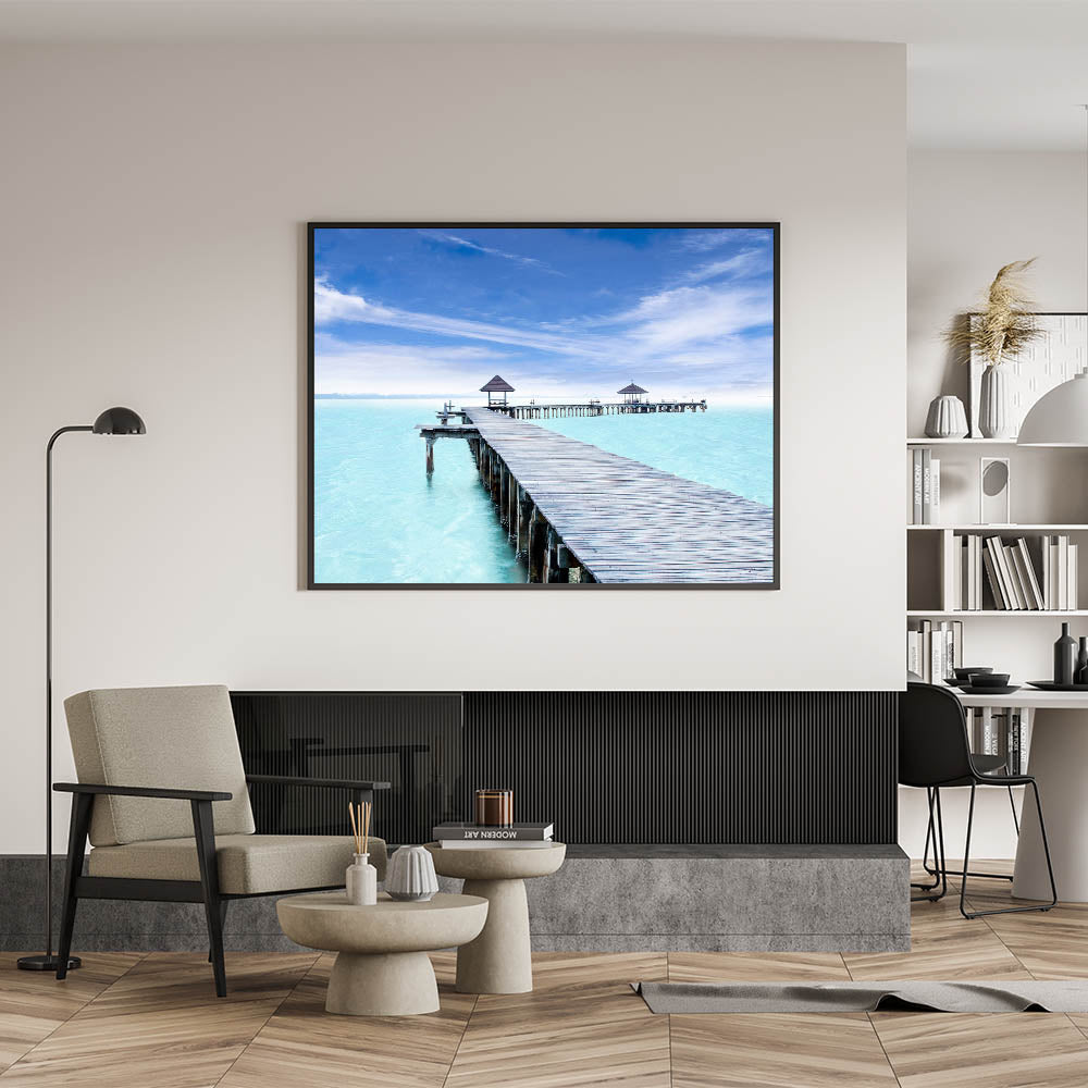 - Scenic Cancun pier poster that enhances your home or office with calm, coastal beauty.