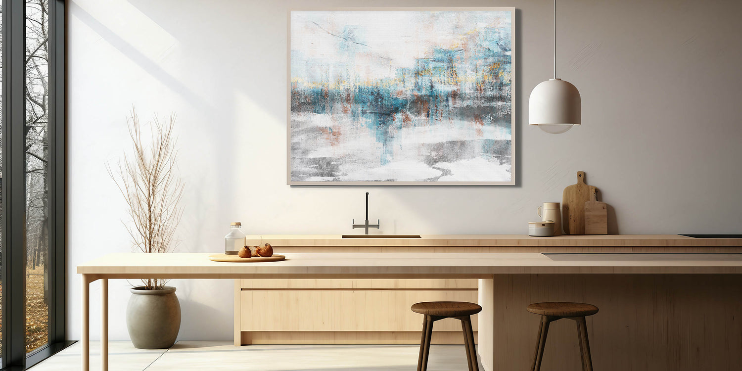This abstract art piece is perfect for those who appreciate minimalist designs with a soothing color palette. Its versatile aesthetic makes it suitable for a wide range of decor styles, from modern to traditional.