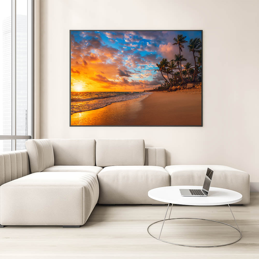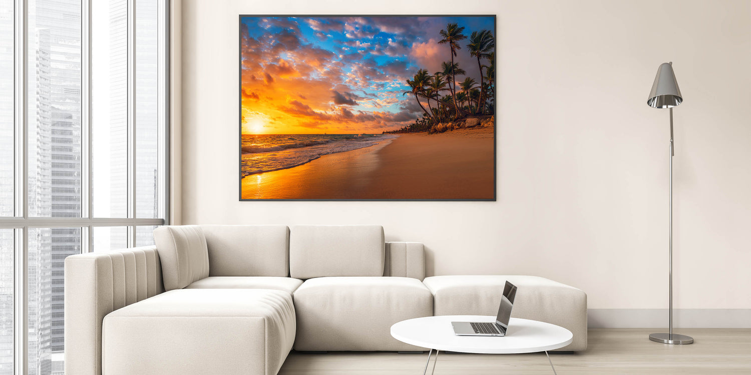 Tropical Beach Sunset Art - Palm Beach Scenic Canvas for Coastal Decor