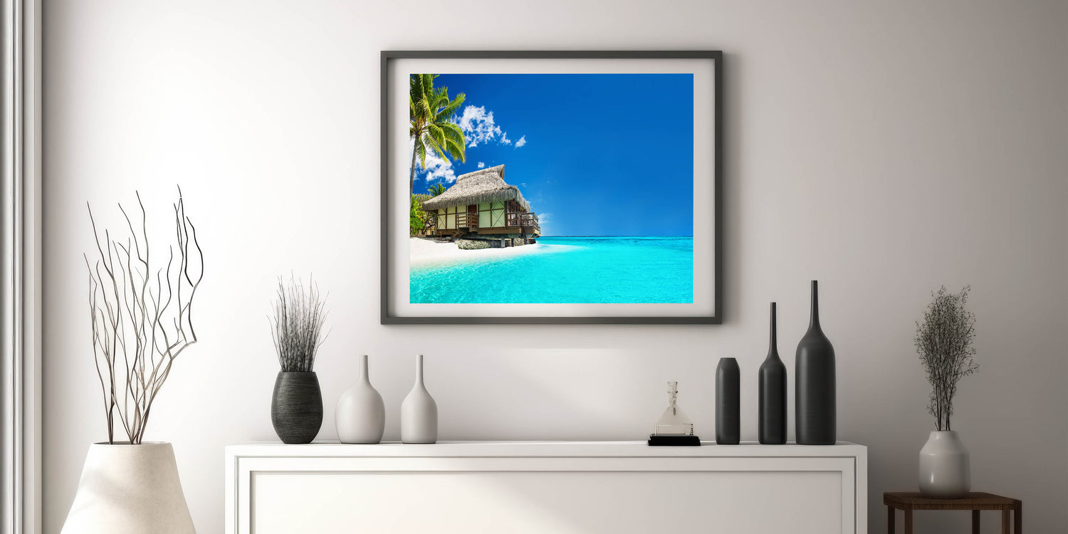 Bring the essence of a luxurious tropical escape into your home with this stunning overwater bungalow wall art. Perfect for those who dream of island getaways, this piece will create a peaceful and inviting atmosphere in your living space.