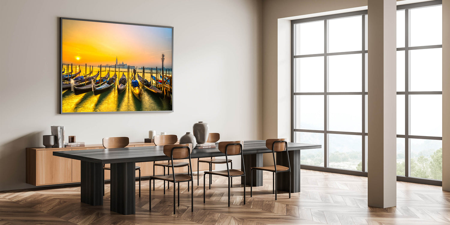 - Vivid colors and high-definition printing bring the vibrant hues of the sunrise and the gondolas to life.