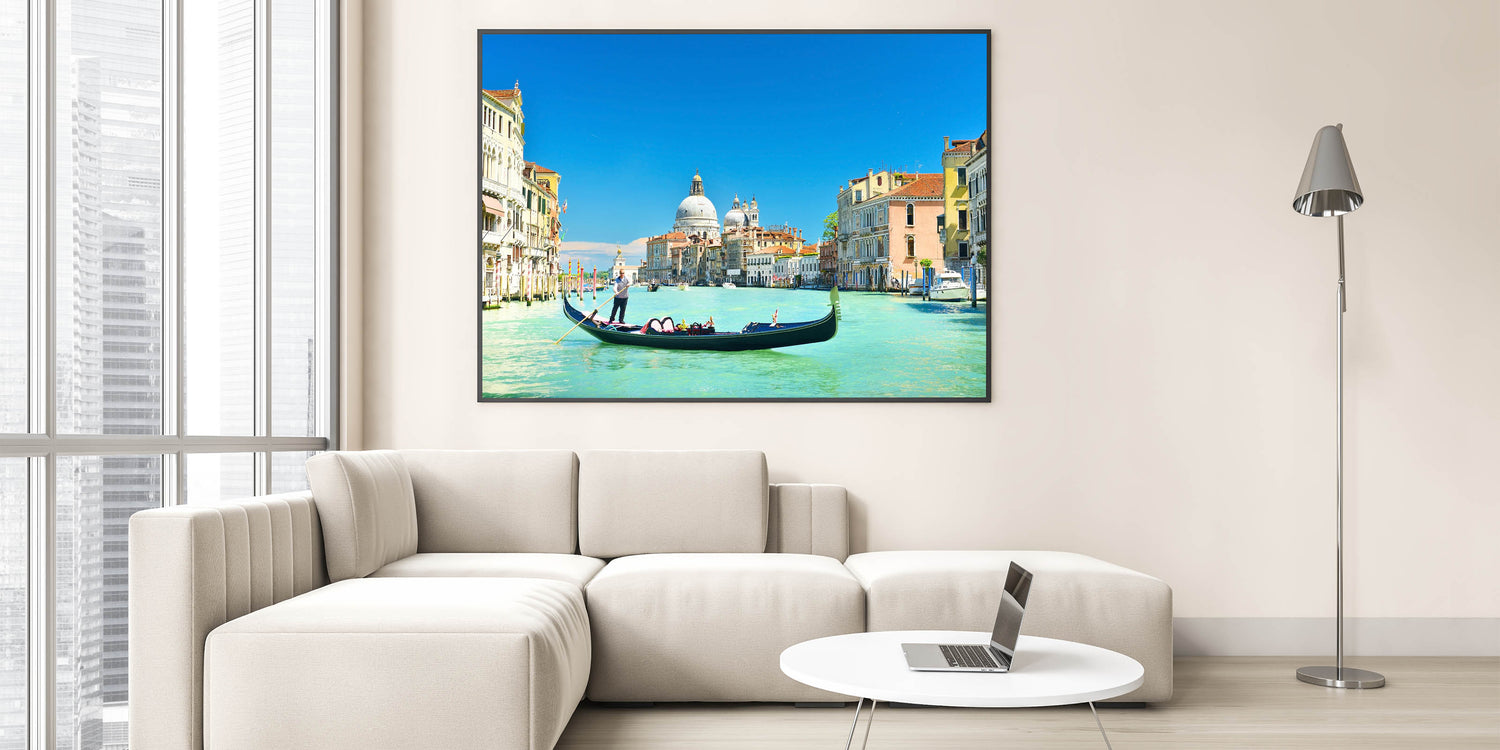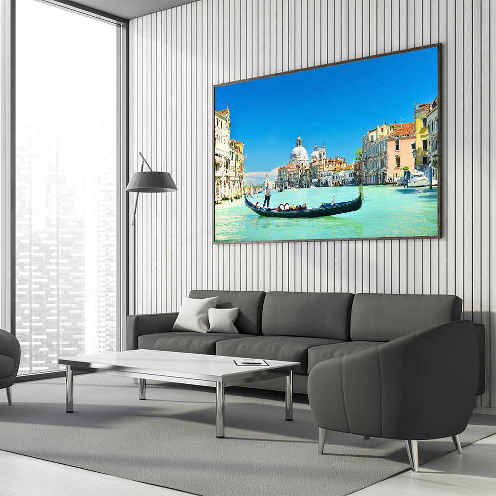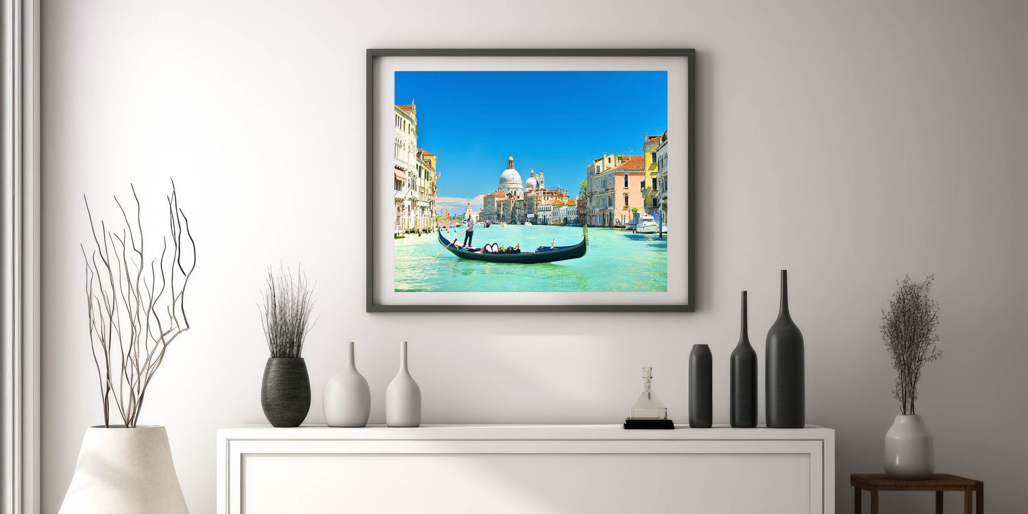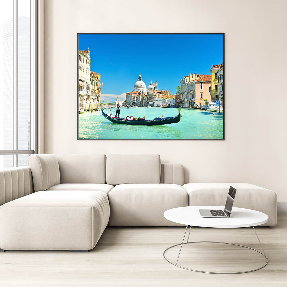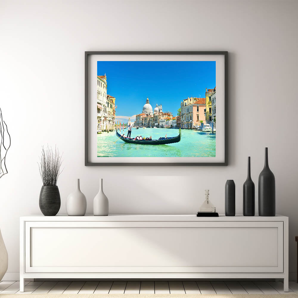 Brighten up your space with this vibrant Venice cityscape, showcasing a gondola gliding along the Grand Canal with the magnificent Basilica di Santa Maria della Salute in the background. This beautifully detailed artwork captures the essence of Venice’s waterways, architecture, and lively atmosphere, making it the perfect centerpiece for any room.