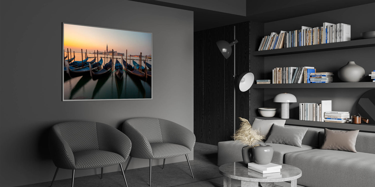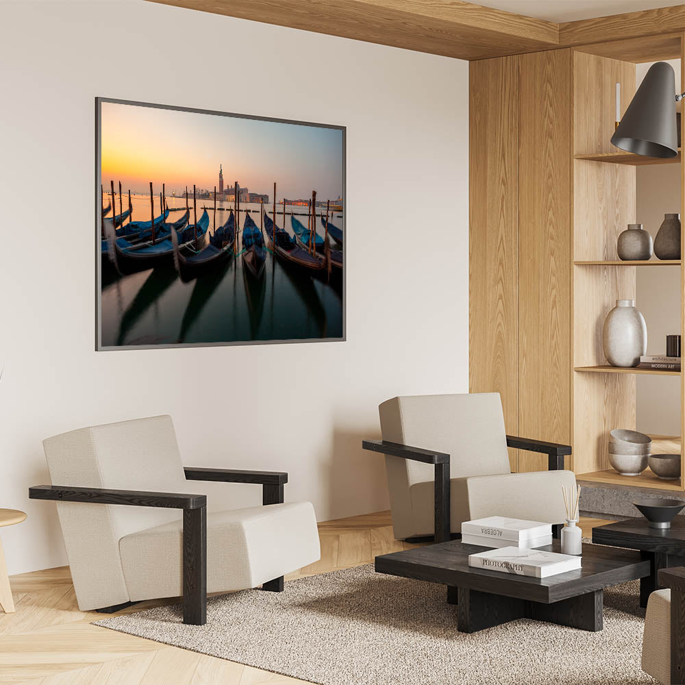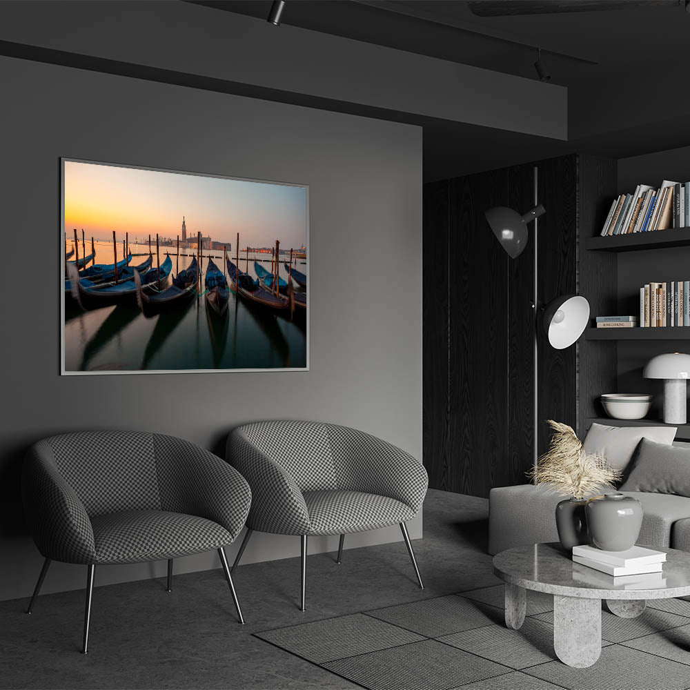 This Venice gondola artwork is perfect for those who appreciate the quiet beauty of the early morning and the timeless charm of Venice. The soft colors and peaceful scene make it a standout piece in any setting.