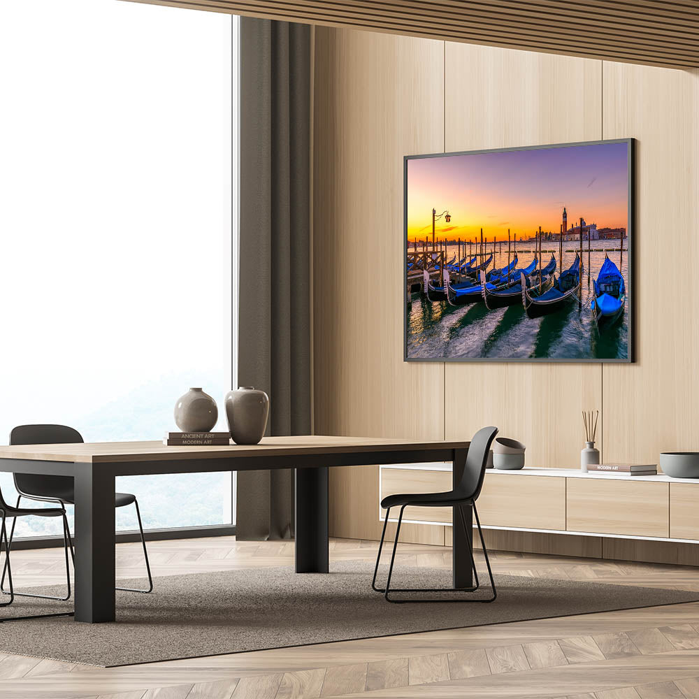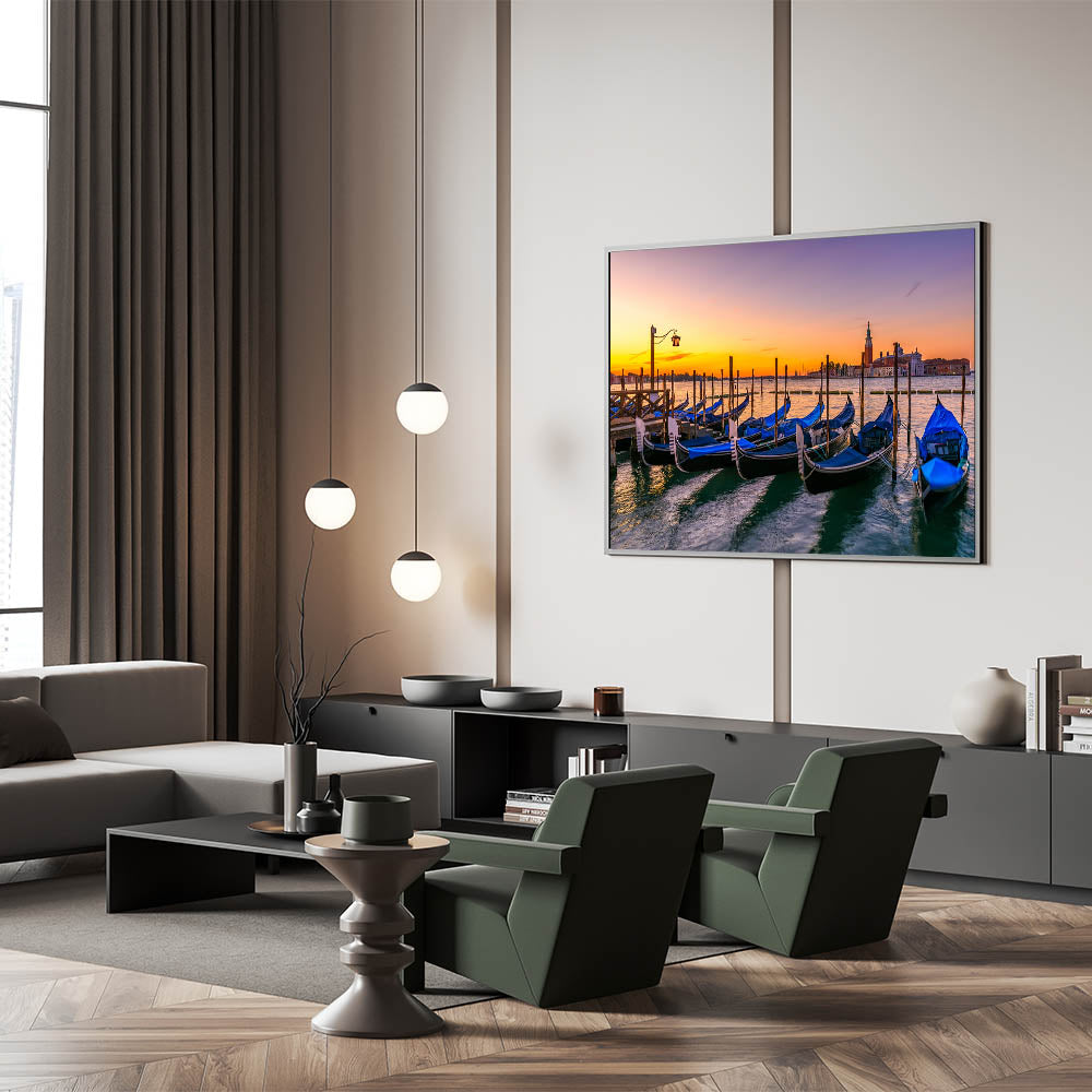 This Venice gondola artwork is perfect for those who appreciate the quiet beauty of a sunset and the timeless charm of Venice. The vibrant colors and peaceful scene make it a standout piece in any setting.