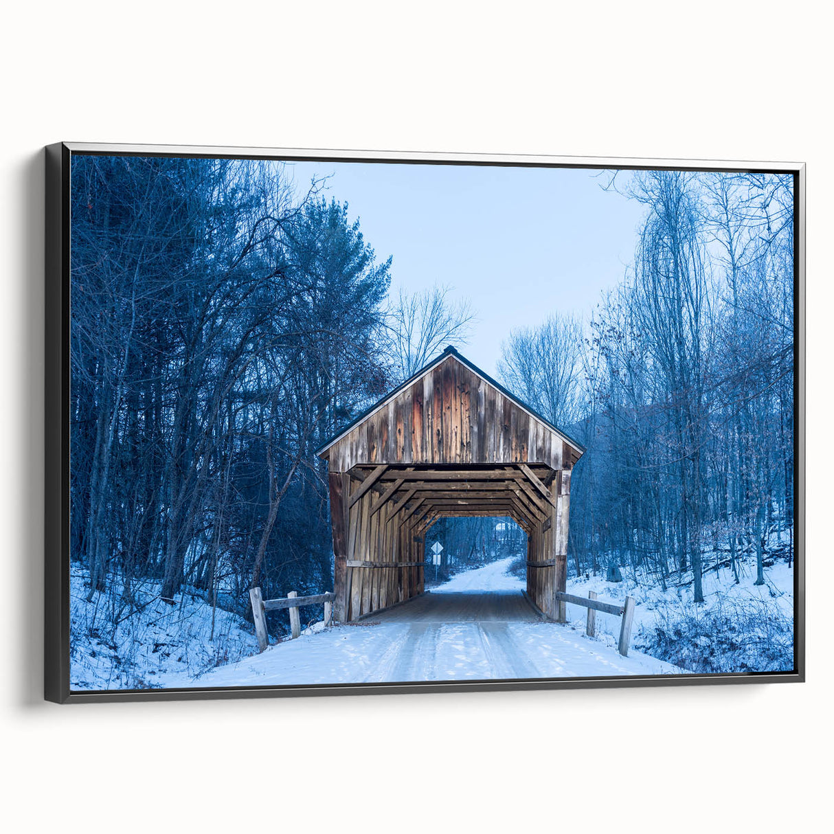 Vermont Covered Bridge Winter Scene - Scenic Snowy Forest Canvas Art