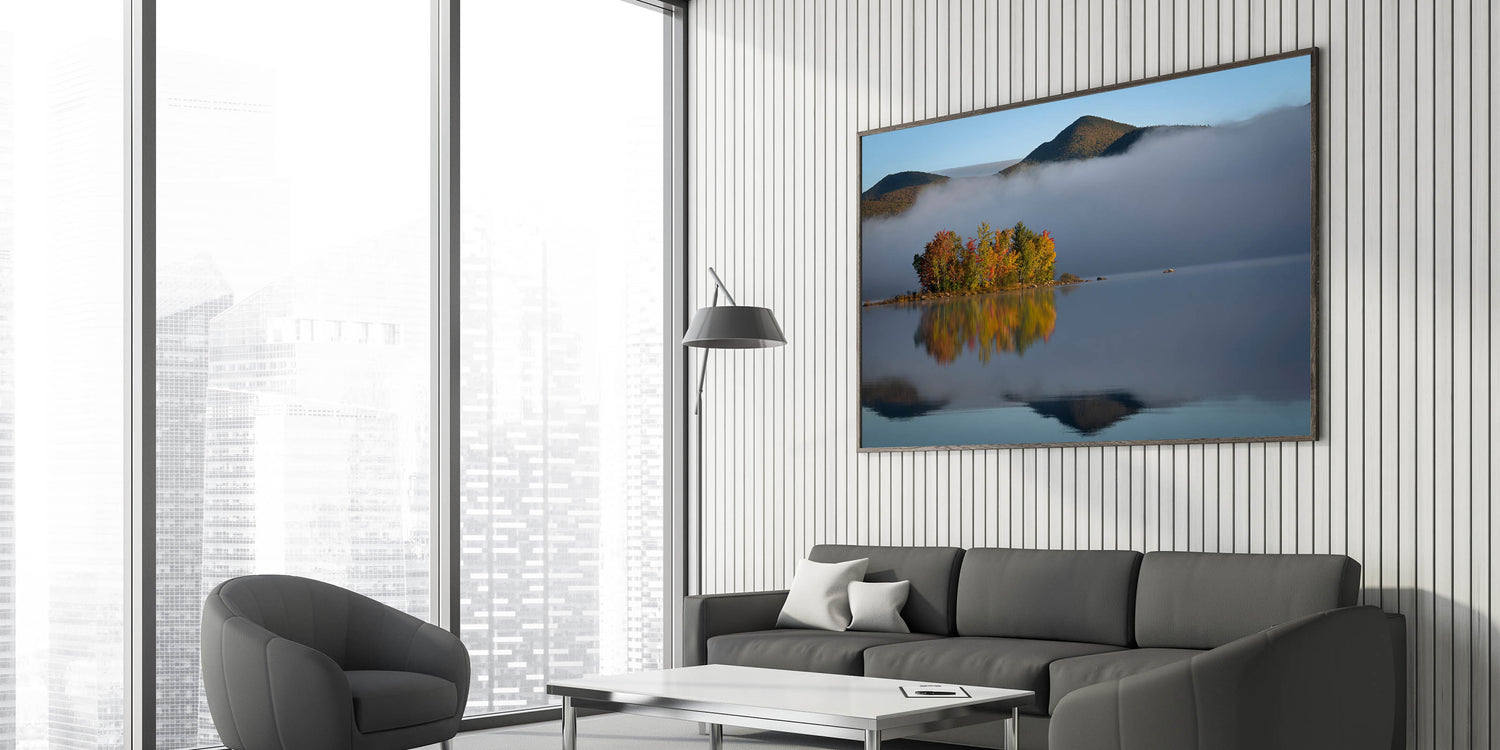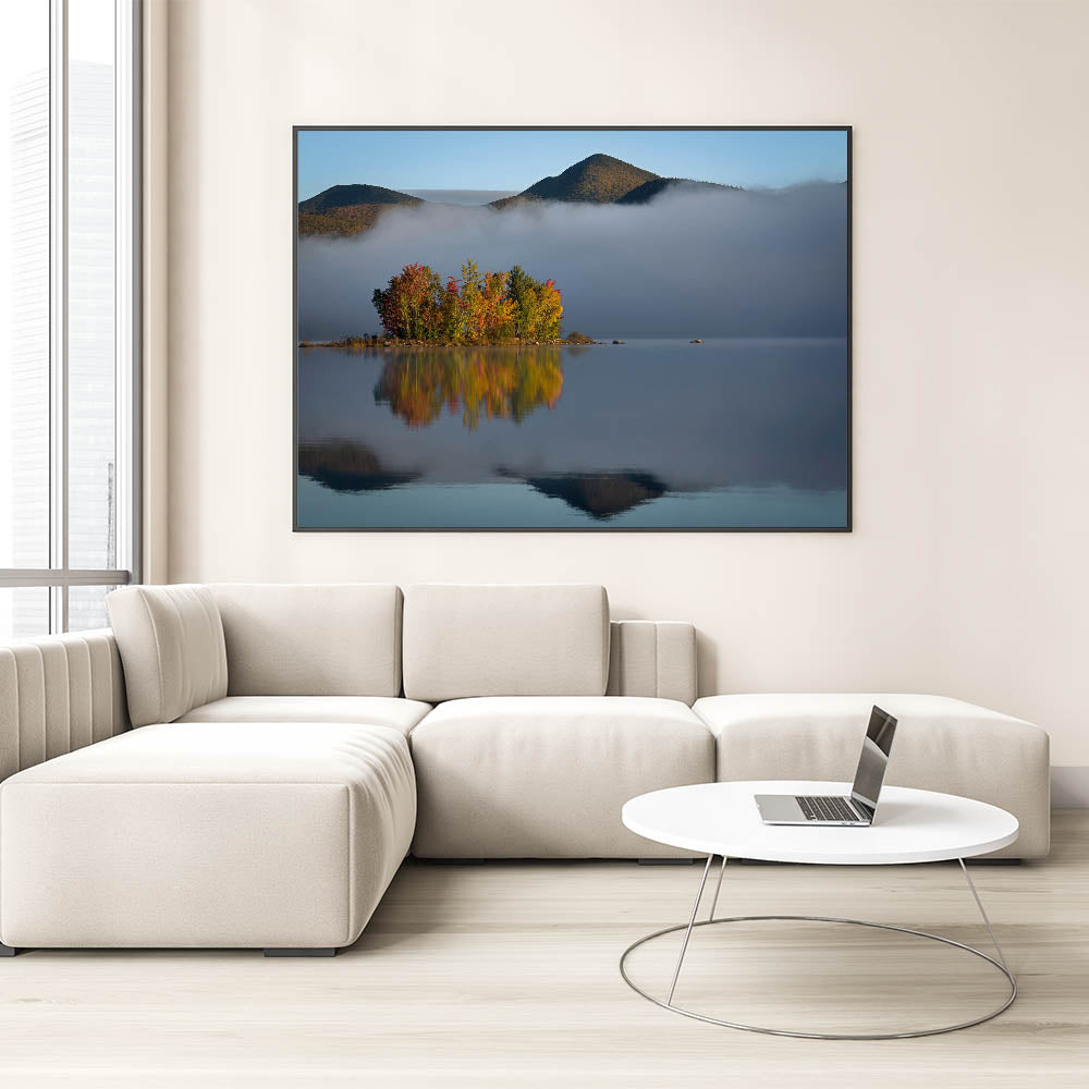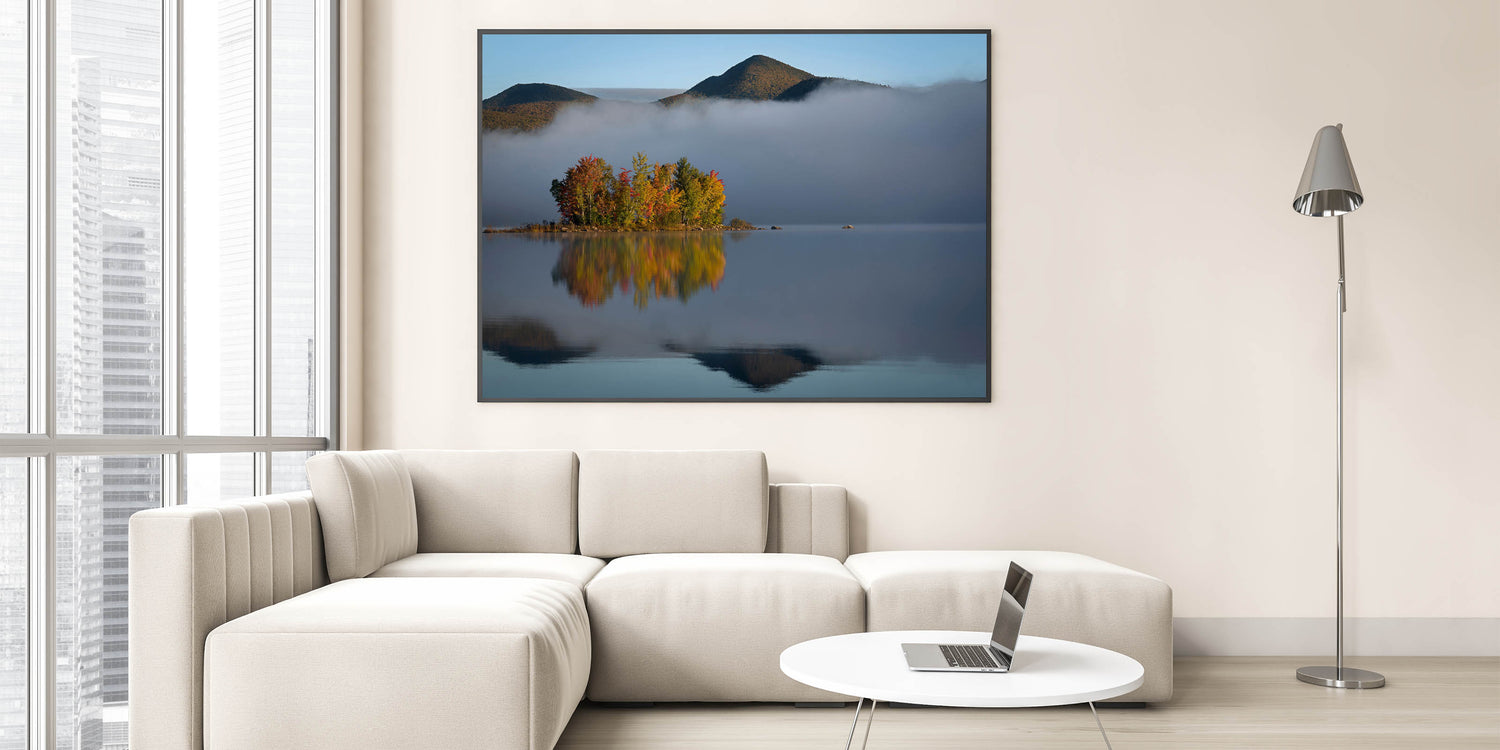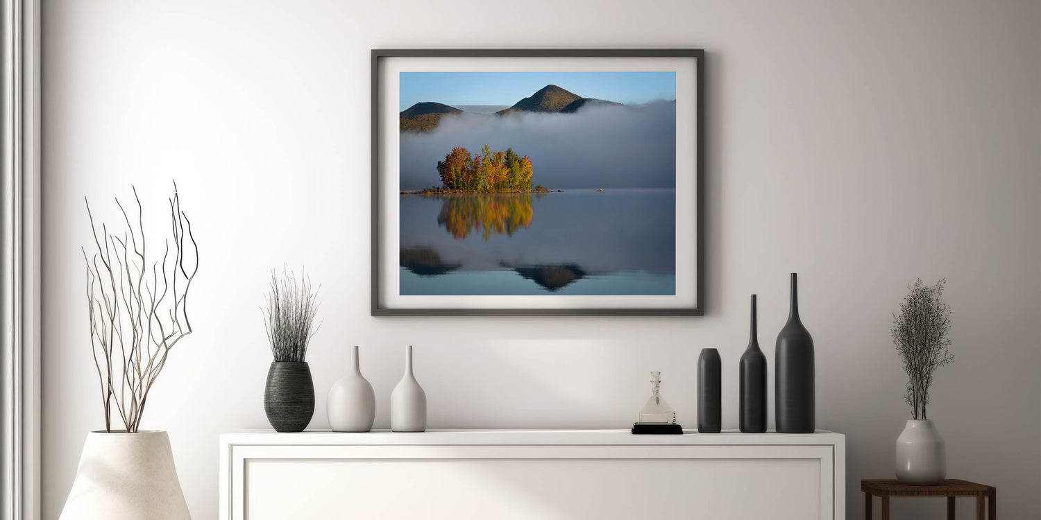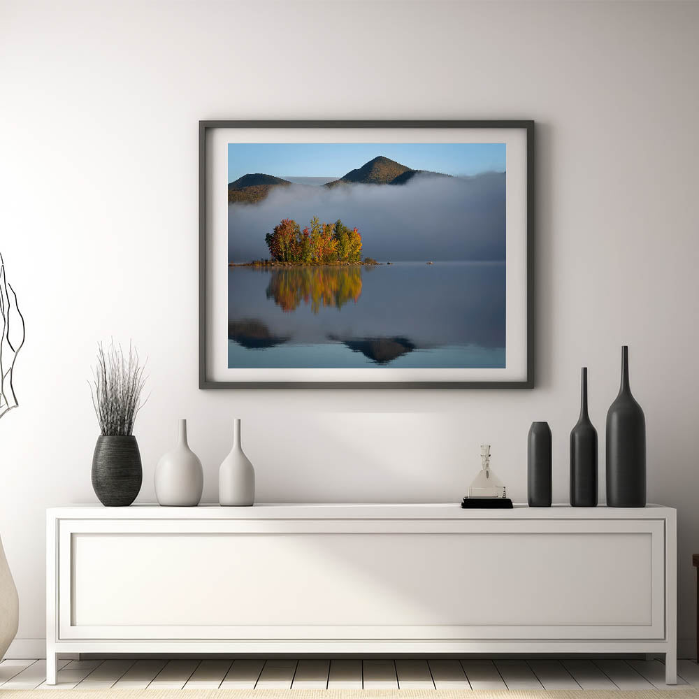 - Stunning Vermont nature prints that capture the peacefulness of a misty morning by the lake.