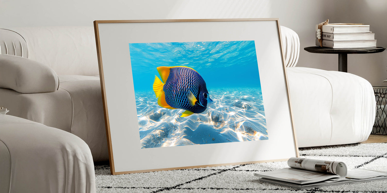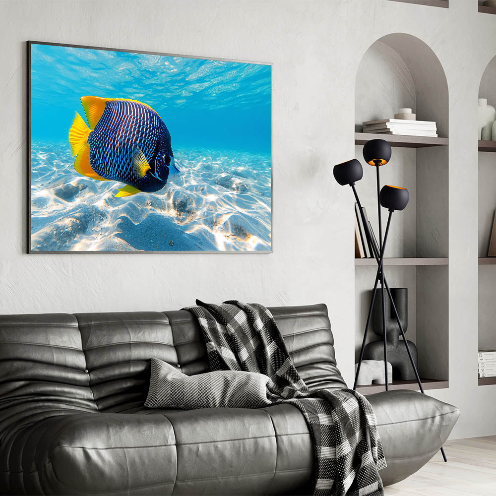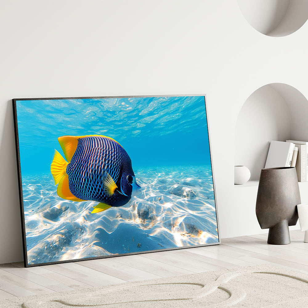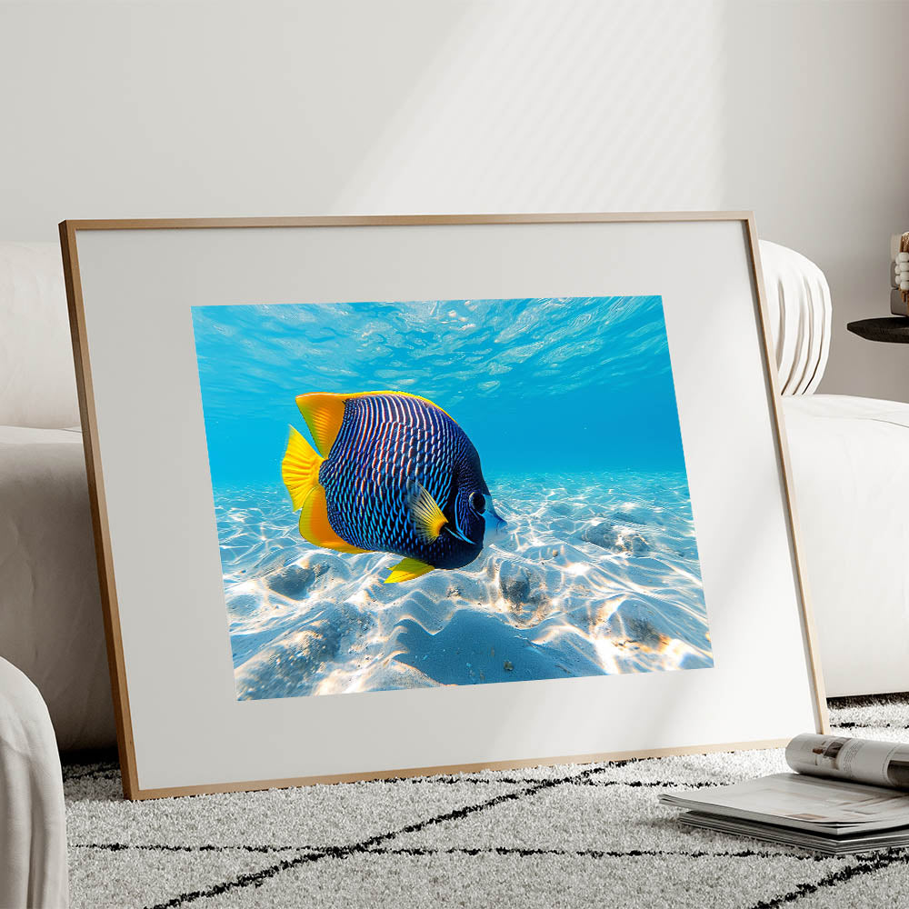 Bring the beauty of the ocean into your home with our Vibrant Angelfish Wall Art. This stunning piece captures the vivid colors and intricate patterns of an angelfish swimming gracefully in crystal-clear waters. Perfect for coastal and nautical decor themes, this artwork adds a splash of color and a touch of underwater serenity to any space.