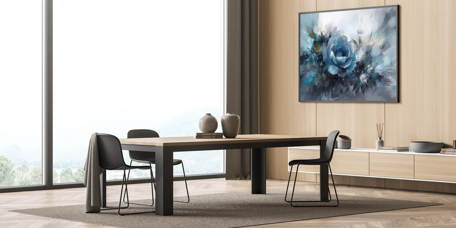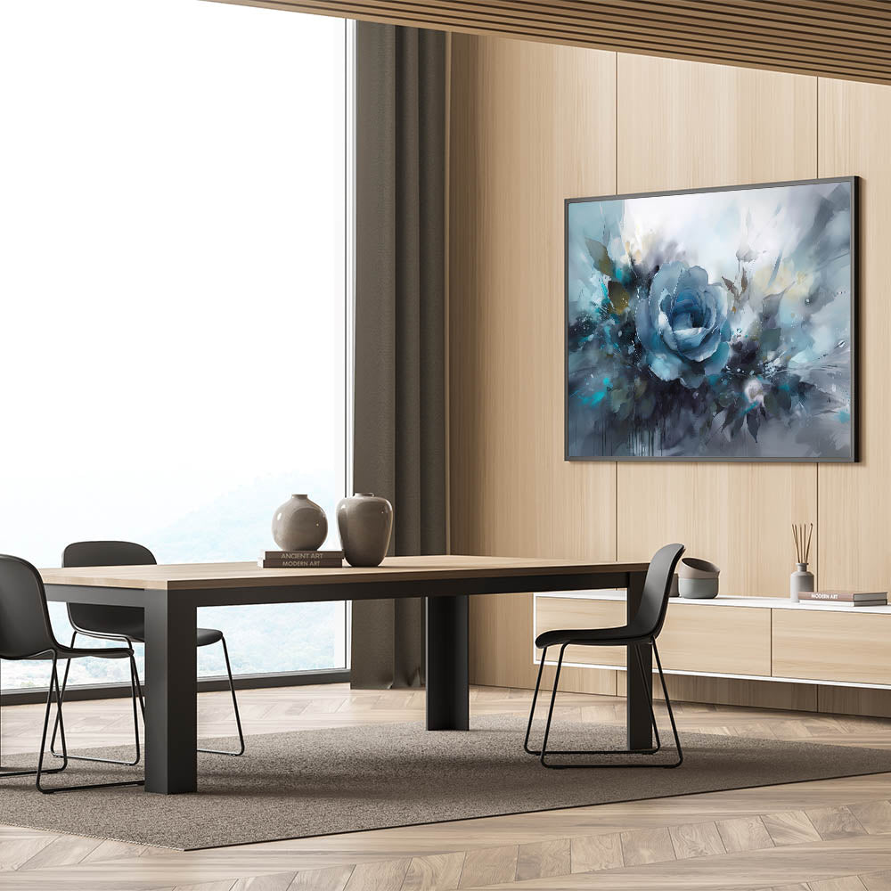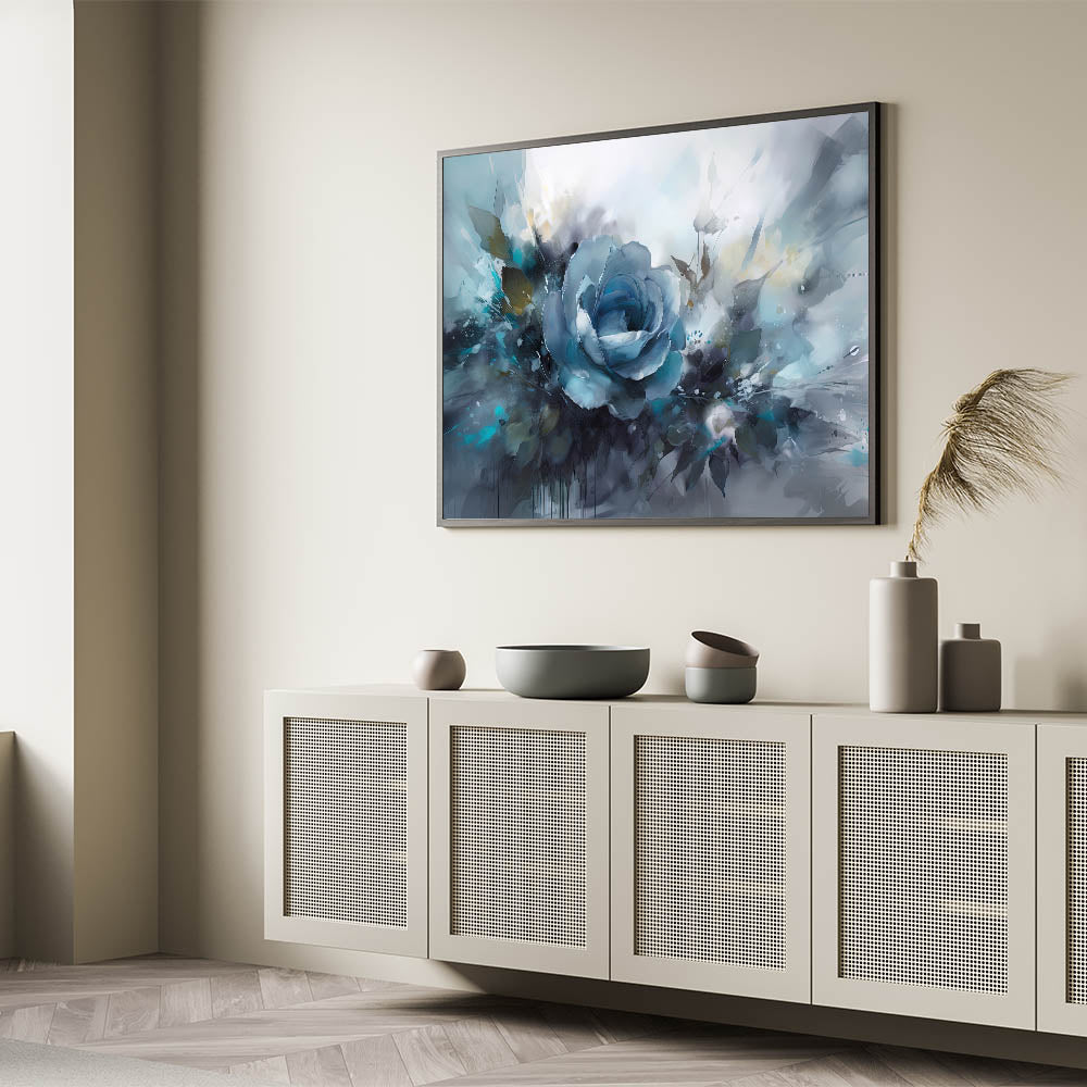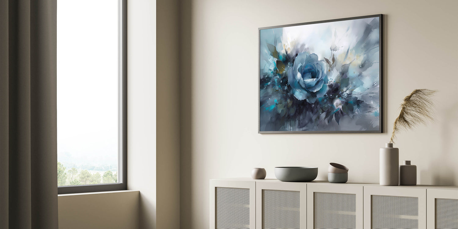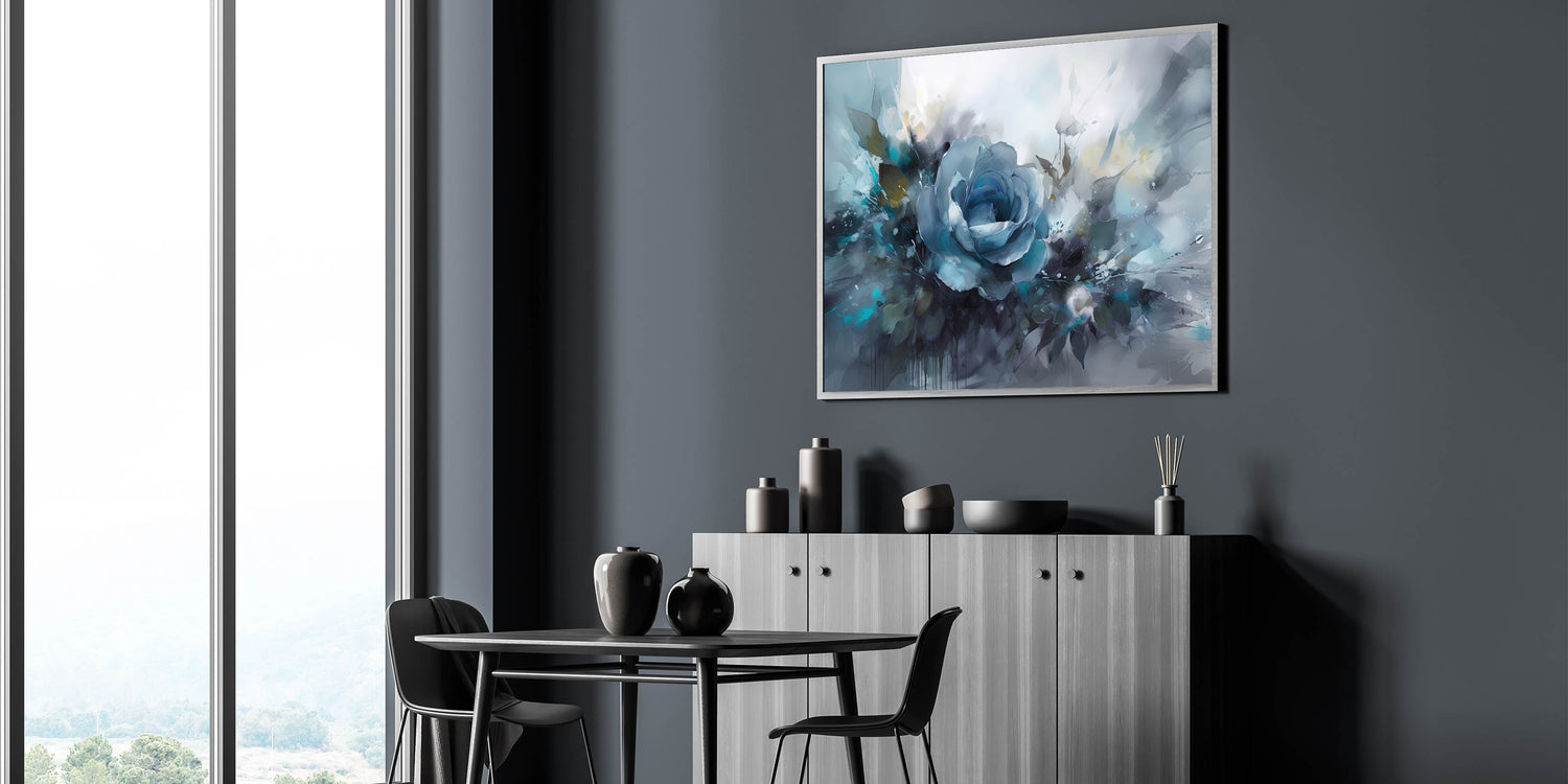 This blue rose art print is a beautiful fusion of color and movement, creating an eye-catching focal point in any room. Whether you're looking to refresh your space with bold, artistic energy or gift someone a beautiful statement piece, this rose-themed wall art will impress.