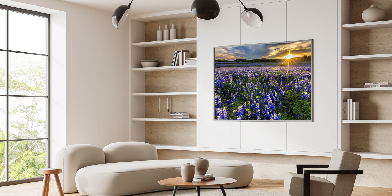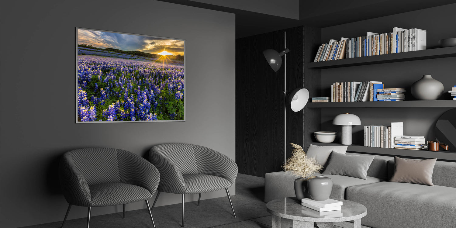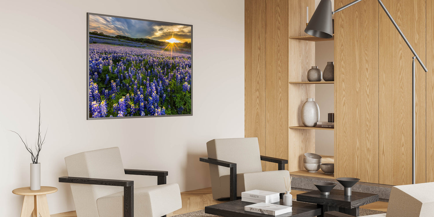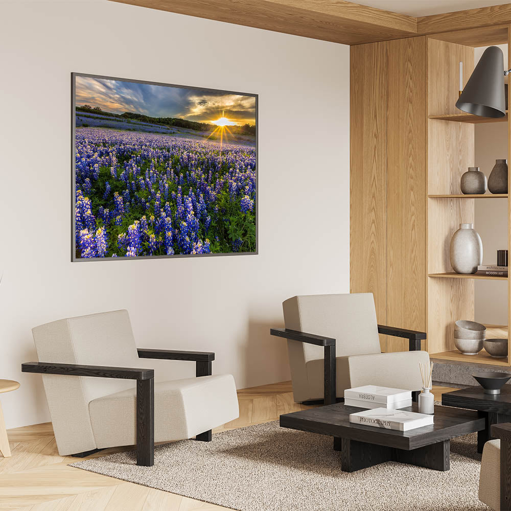 Vibrant Bluebonnet Field at Sunrise - Texas Wildflower Scenic Wall Art