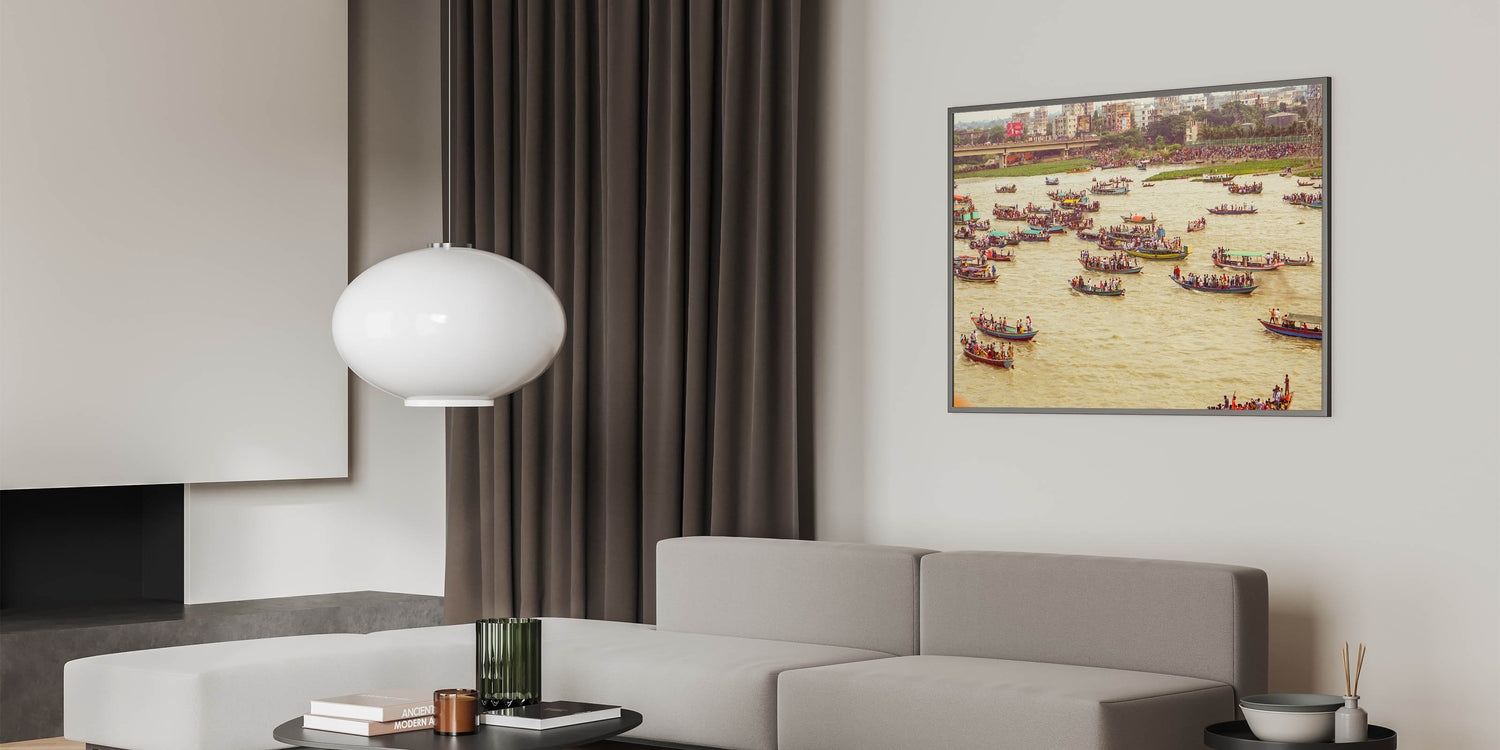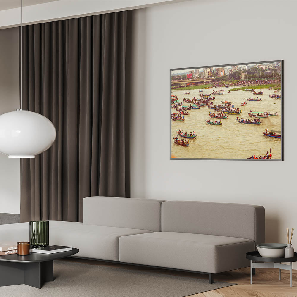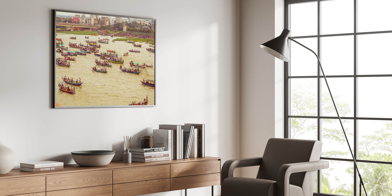 This wall art is perfect for anyone who appreciates the vibrancy of cultural celebrations and the dynamic beauty of river life. Transform your space with this captivating Bangladeshi boat festival scene, and let the festive energy fill your surroundings.